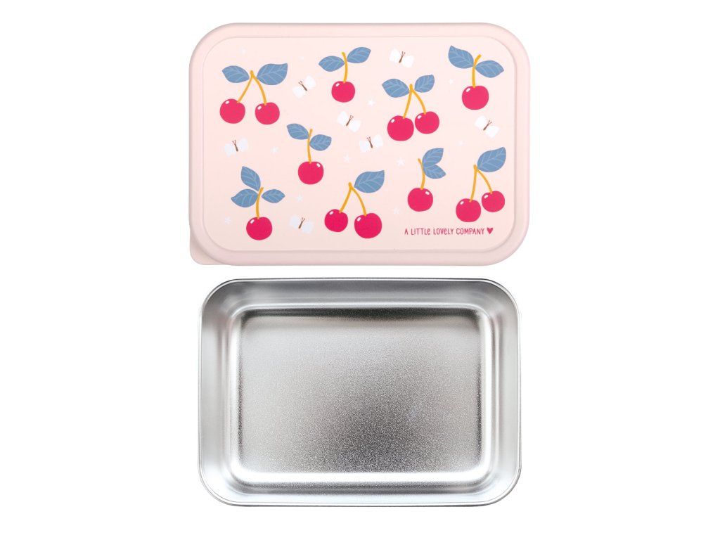 A Little Lovely Company – nerezová krabička na oběd s plastovým víkem - třešně