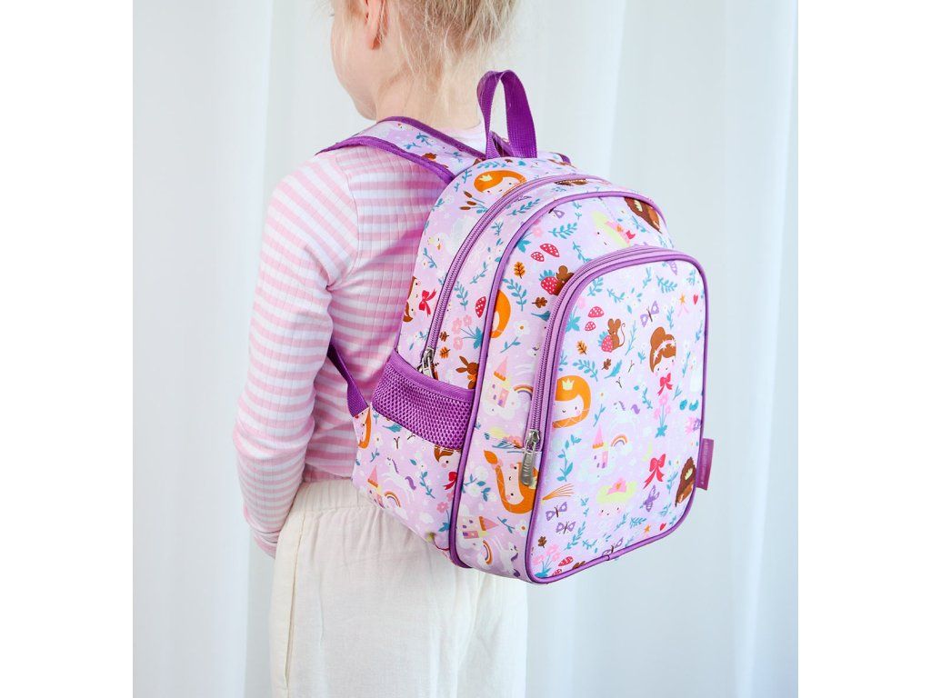 Dětský batůžek je ideální do školky nebo na cesty. Batoh má prostornou hlavní komoru, izolovanou přední kapsu na svačinu a nápoje. Láhev na pití se vejde i do jedné ze dvou bočních kapes. Praktické jsou polstrované ramenní popruhy a hrudní popruh proti sklouznutí z ramen. Zadní panel je polstrovaný pro větší pohodlí a je vybaven prodyšnou tkaninou. Batoh není vhodné prát, stačí otřít vlhkým hadrem.