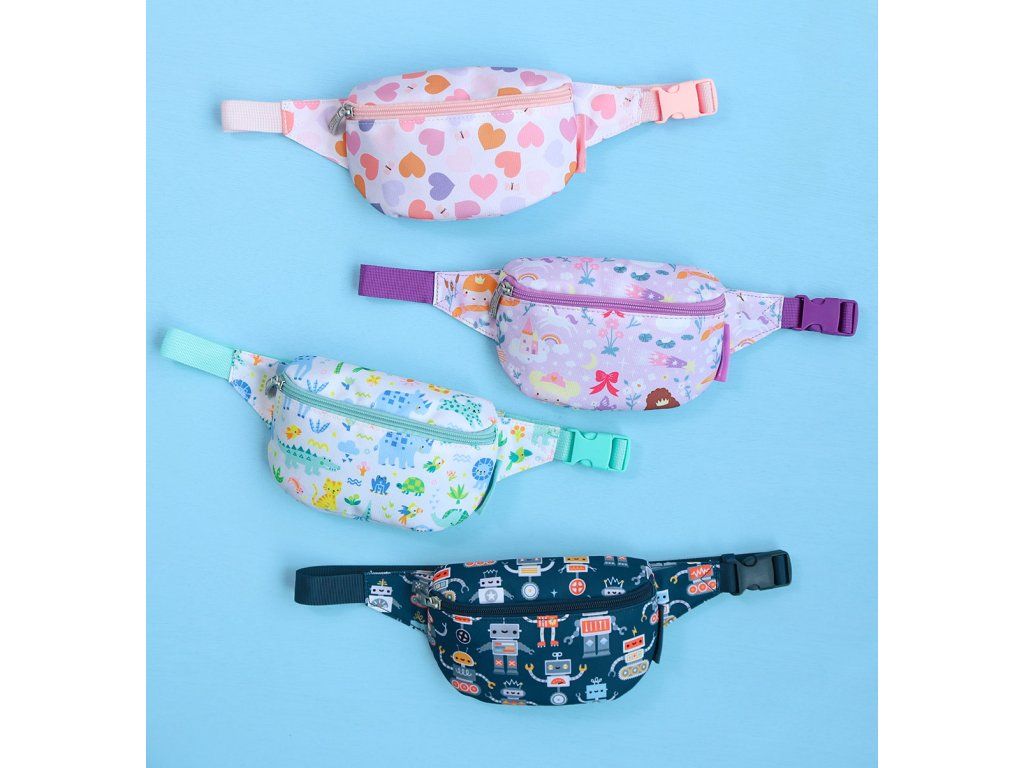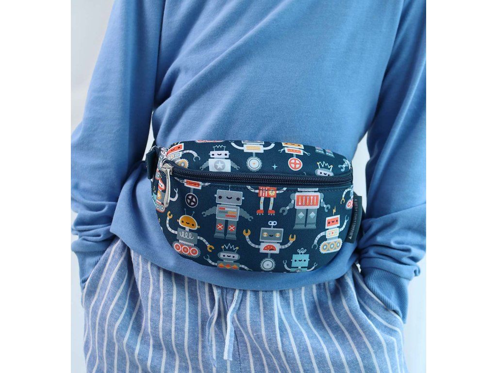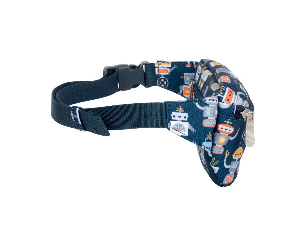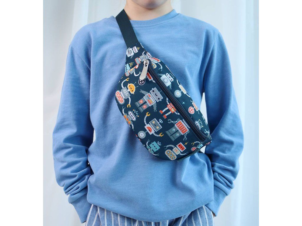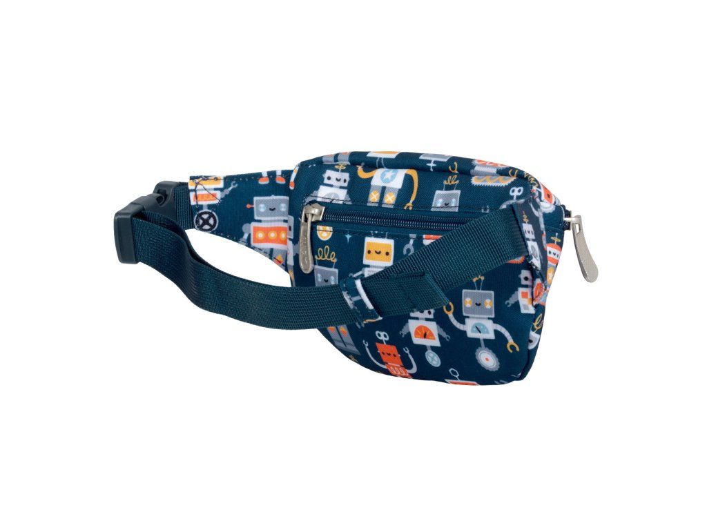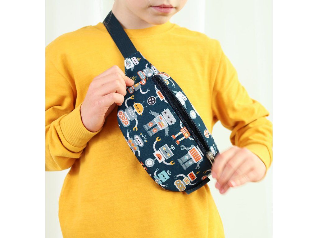 Dětská ledvinka s potiskem robotů má nastavitelný popruh. Dá se nosit kolem pasu a lze jí použít i jako crossbody kabelku. Do přední přihrádky se snadno vejde peněženka a mobilní telefon. Zadní kapsa na zip je ideální na drobné cennosti. Doplňte si sadu batohem, lahví na pití a krabičkou na oběd ve stejném designu.