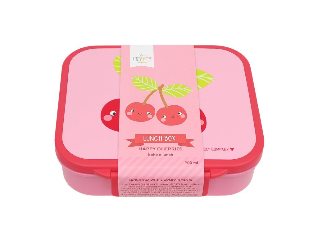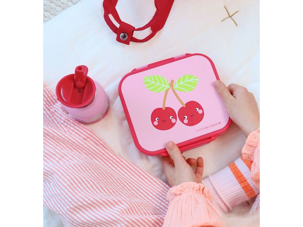 A Little Lovely Company - krabička na svačinu s přihrádkami – veselé třešničky