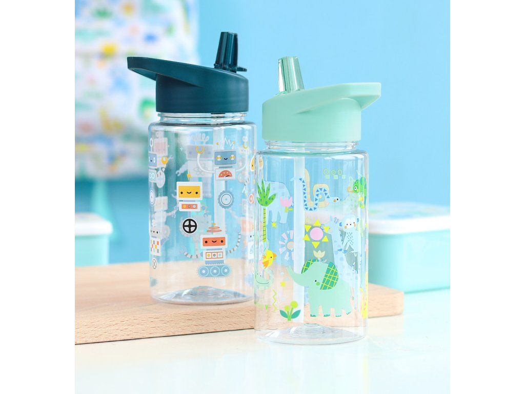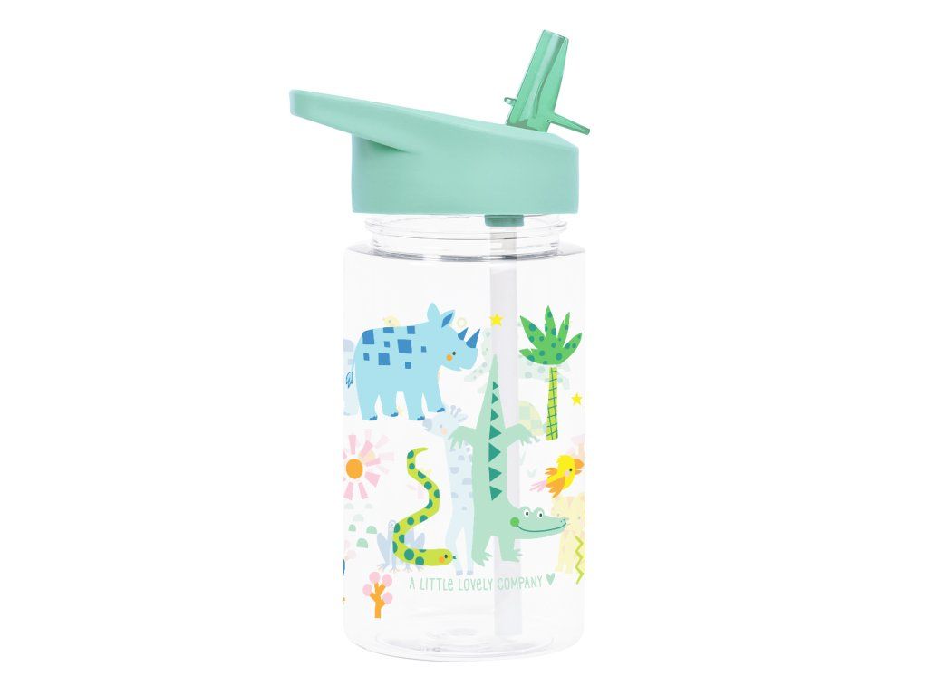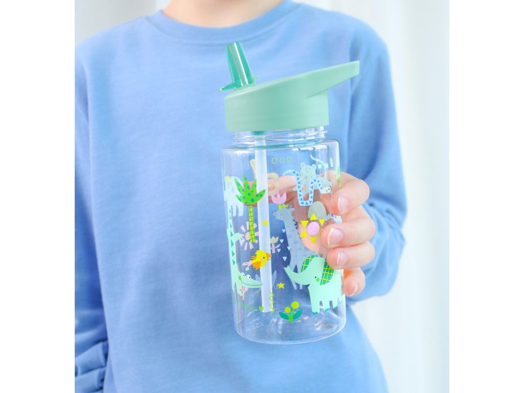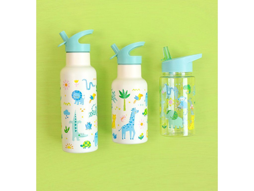 Průhledná dětská láhev na pití s potiskem zvířat z džungle. Láhev je nepropustná a ideální na výlety nebo do školky. Můžete si poskládat krásnou a kompletní sadu ve stejném designu - lahev na pití, batoh a krabička na svačinu. Láhev je nevhodná pro vroucí nebo horké tekutiny, mikrovlnnou troubu nebo troubu.
