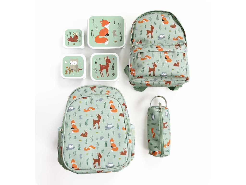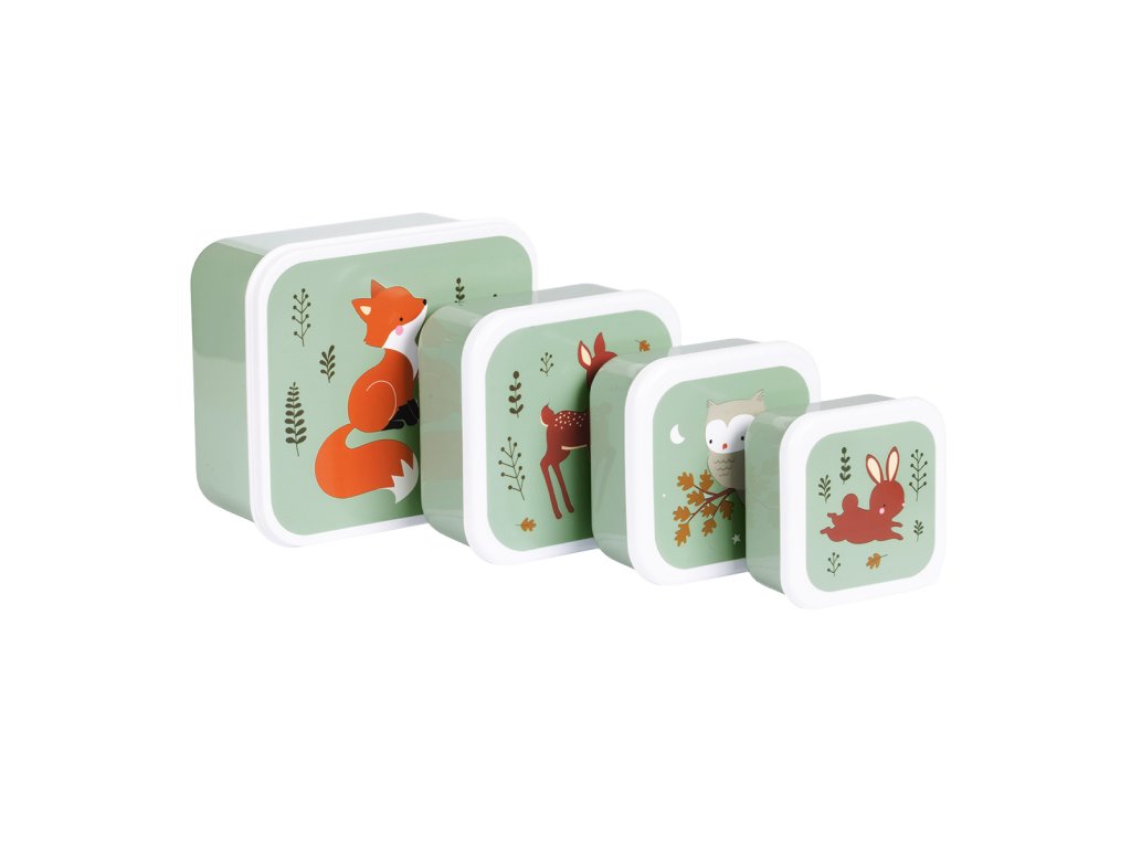 A Little Lovely Company - sada čtyř svačinových krabiček - kamarádi z lesa - zelená