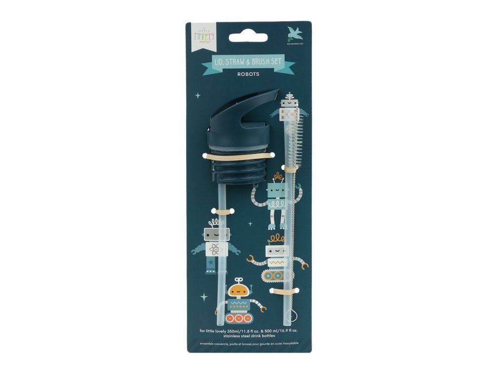 A Little Lovely Company - uzávěr, kartáček a brčko k nerezové lahvi – roboti