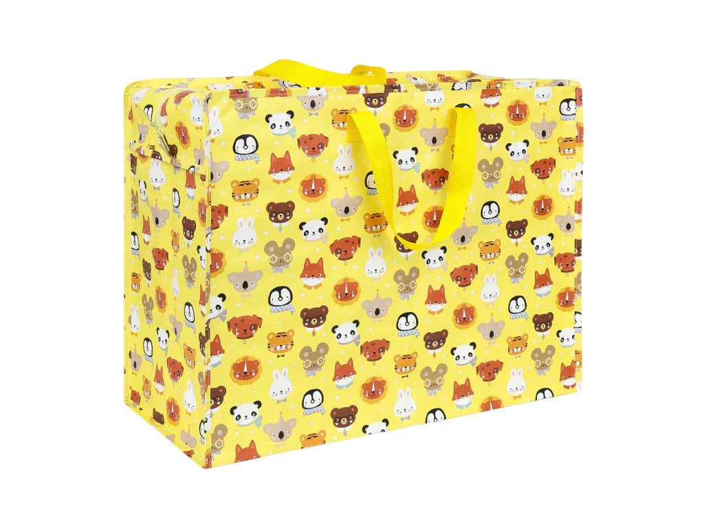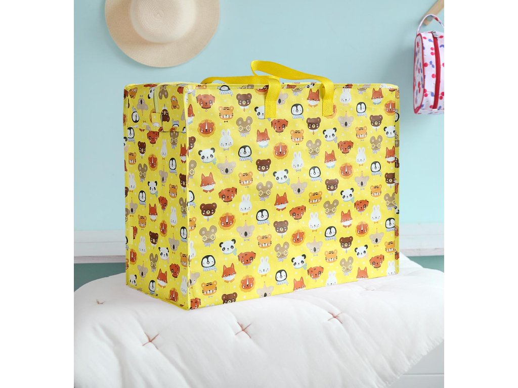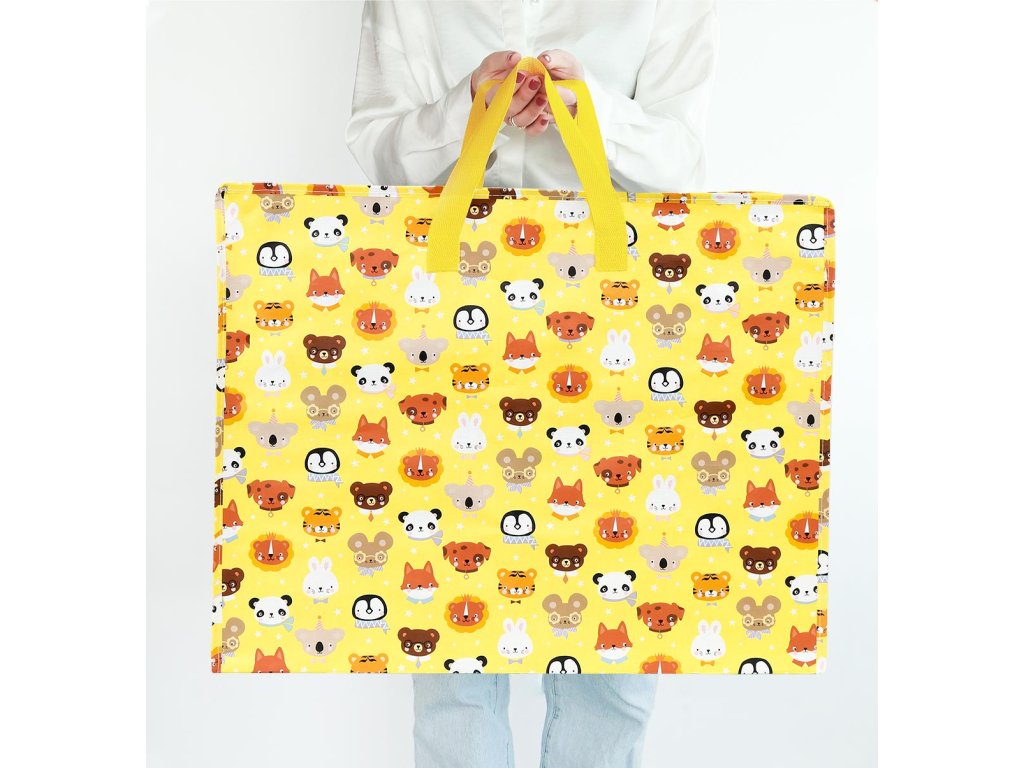 Velká úložná taška s potiskem zvířátek je ideální pro skladování oblečení, přikrývek a hraček, ale lze ji také použít na pláž nebo do bazénu. Taška je vyrobena z recyklovaného plastu a zavírá se na zip. Tašku lze snadno složit, takže pokud jí zrovna nevyužíváte, nezabírá příliš místa.