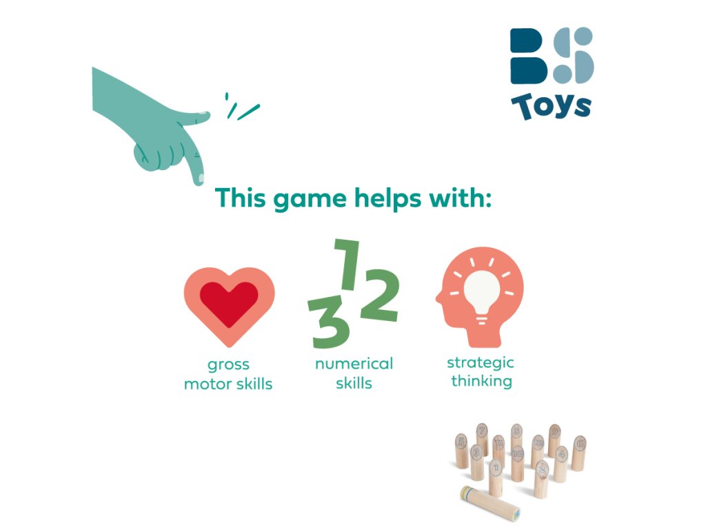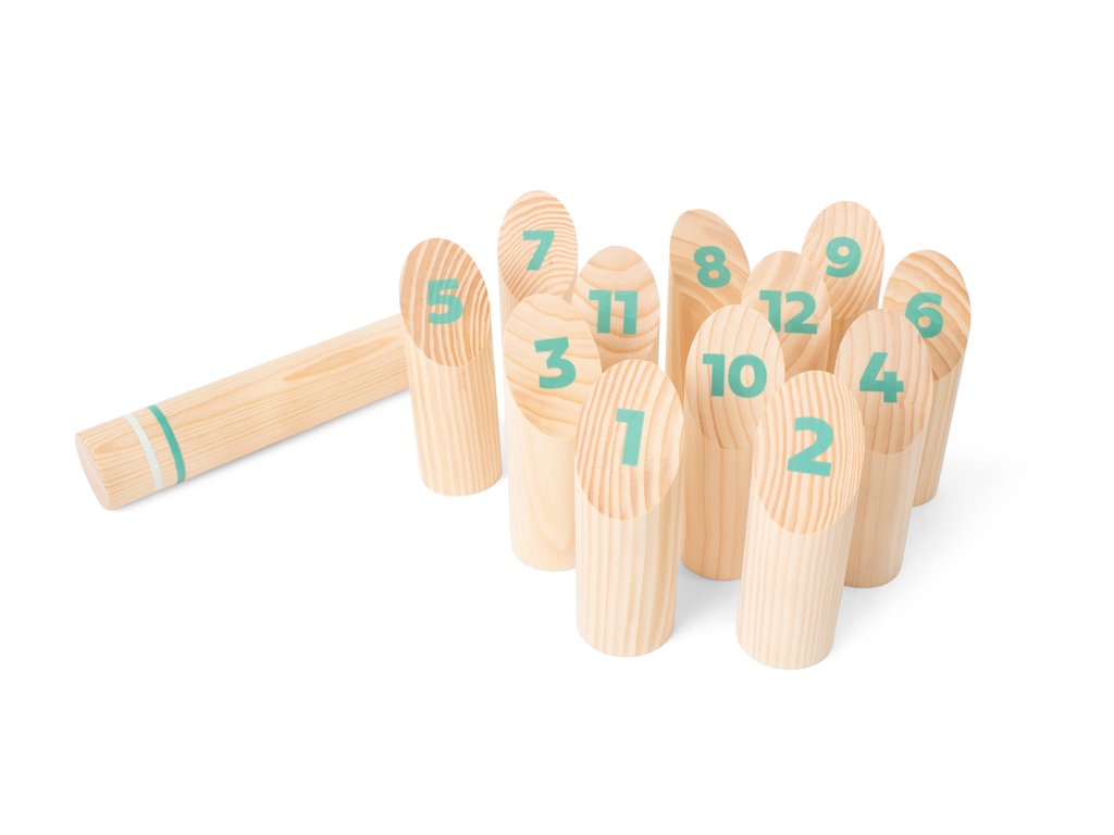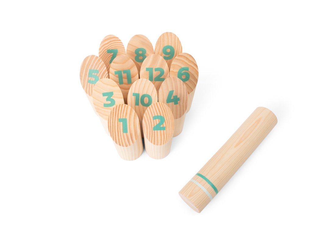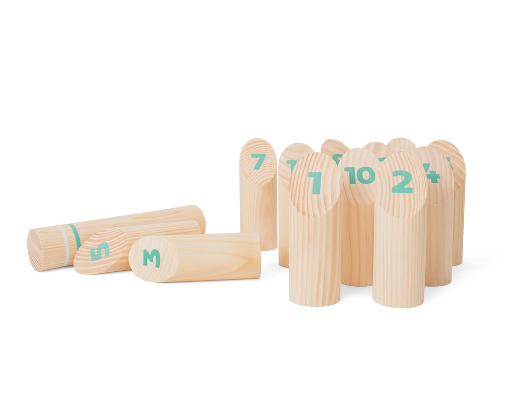 Finská házecí hra od 2 až 4 hráče od 8 let je perfektní pro rodinné chvíle v přírodě. Děti hází dřevěným kolíkem na sadu dřevěných kuželek očíslovaných od 1 do 12. Hráči se snaží srážet kuželky a získávat body podle pravidel. První hráč, který dosáhne přesně 50 bodů, vítězí. Hra je ideální na zahradu, park, pláž nebo piknik.