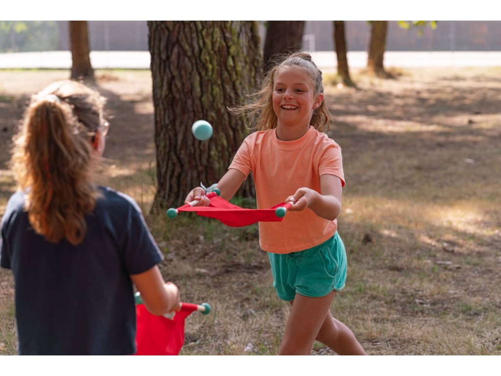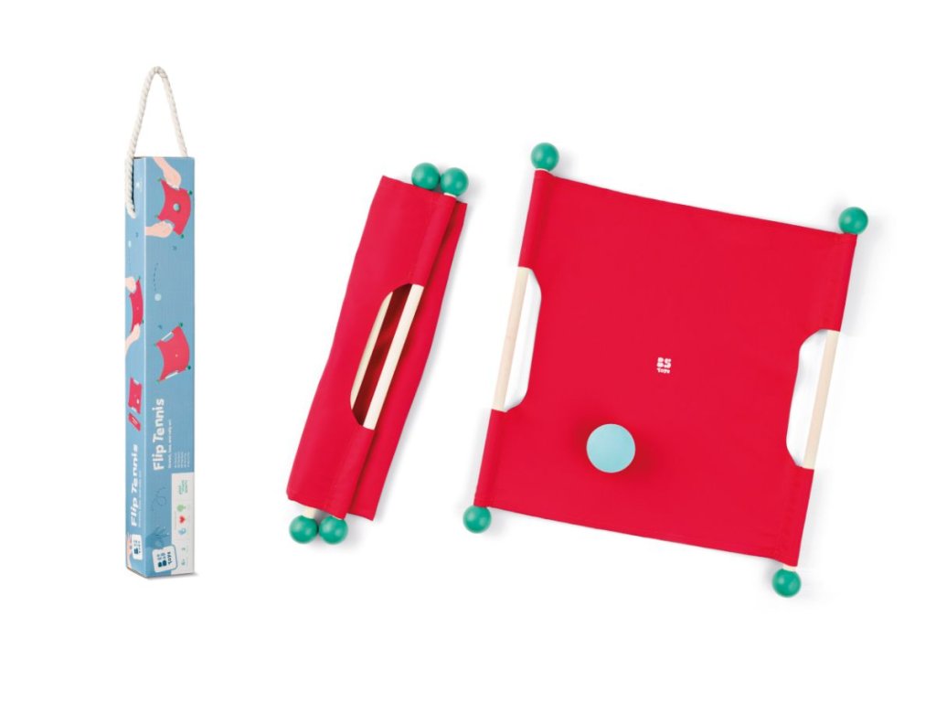 Hoďte míček do vzduchu pomocí pálky a zkuste, jak dlouho vydržíte hrát. Natáhněte látku, abyste vystřelili míček, a společně zkuste udržet výměnu míčku co nejdéle, stejně jako v tenise. Pro dva hráče od 6 let.