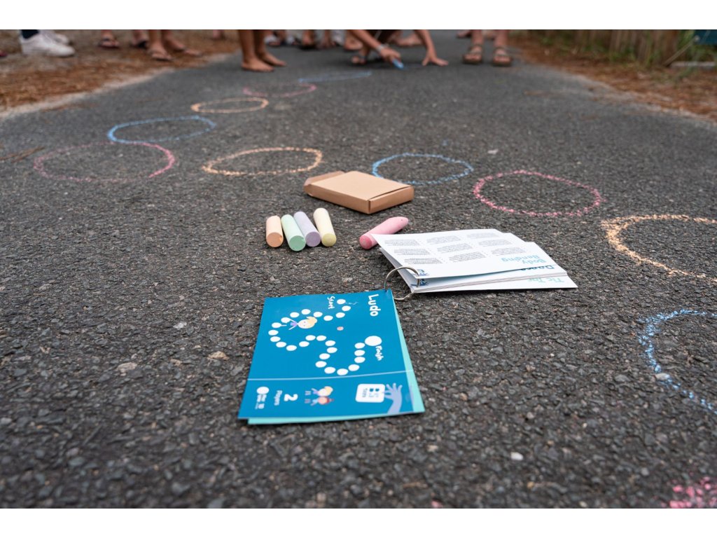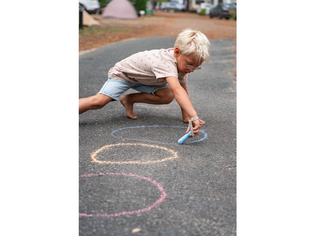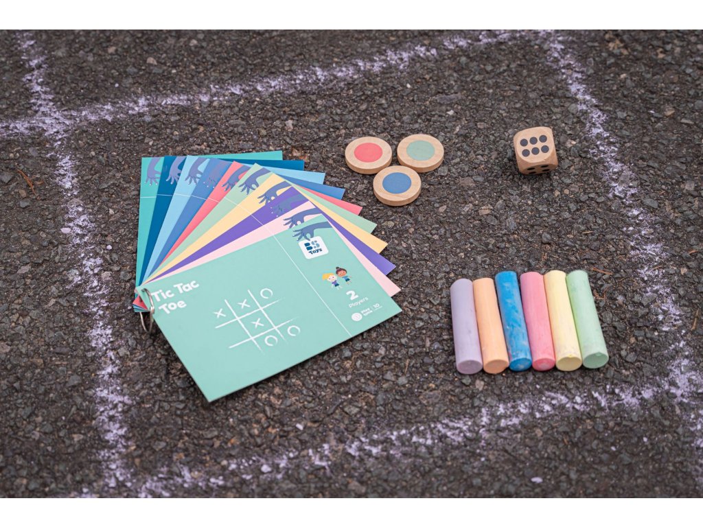 Skvělá zábava s křídami pro 1-4 hráče od 3 let. Sada obsahuje křídu na chodník, kostku, házecí žetony a deset karet plných nápadů na hravé hry! Nakreslete si herní pole křídou a objevte aktivity jako panák, šipky, ludo nebo skok daleký.