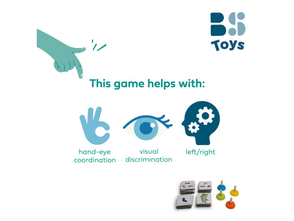 Hra pro 2-4 hráče od 4 let. Krokodýl je trochu zmatený! Hledá své ponožky, ale nemůže najít odpovídající pár. Otočte kartu a buďte první, kdo chytí chybějící ponožku pomocí přísavky! Ale pozor, potřebuje krokodýl svou levou nebo pravou ponožku? Posláním této hry je umožnit dětem bavit se bez chytrých telefonů a tabletů.
