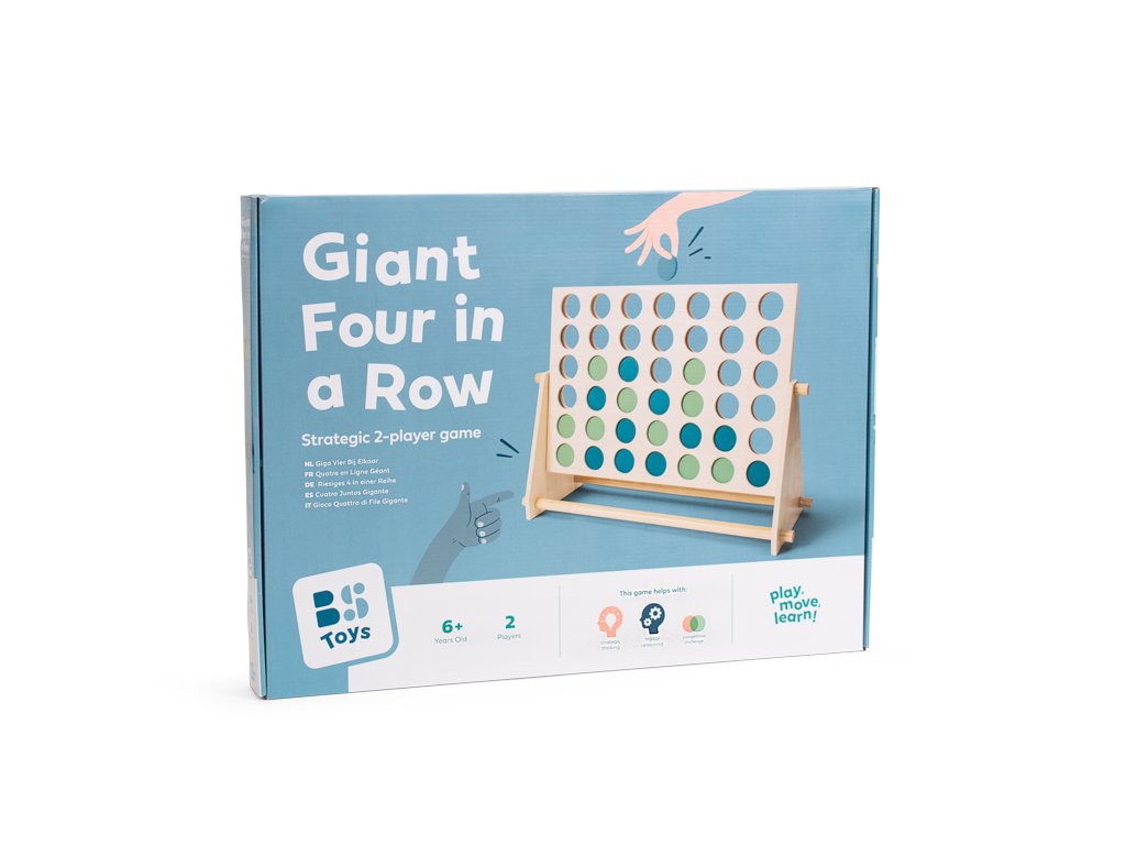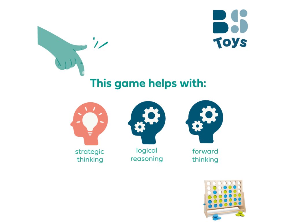 Hra obsahuje velký rám o velikosti 57 × 39 cm a dvě sady výrazně barevných žetonů (modré a zelené), které se vkládají do otvorů. Cílem hry je jako první vytvořit řadu 4 žetonů své barvy. Řady mohou být horizontální, vertikální nebo diagonální. Hra vyžaduje plánování tahů dopředu pro útočné i obranné strategie. Hra pro 2 hráče od 6 let.