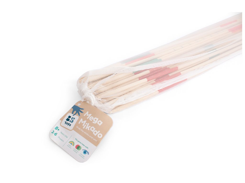 Hra Mikádo pro 2-6 hráčů od 8 let je vyrobena z dlouhých bambusových tyčí. Sada obsahuje 31 bambusových tyček, jejichž přirozeně nepravidelný tvar přidává na výzvě. Hráči střídavě vytahují jednotlivé tyčky, přitom se snaží nepohnout s ostatními – ideální pro rozvoj jemné motoriky i trpělivosti.