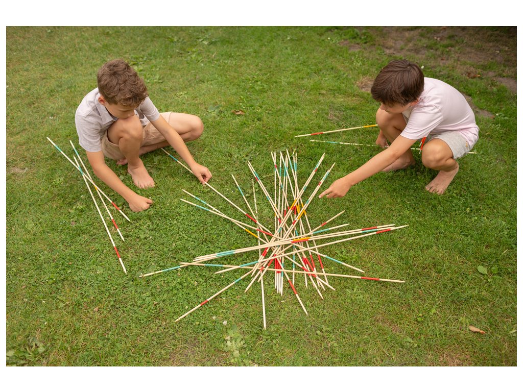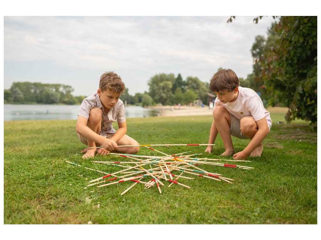 přenosná a odolná hra – bambusové tyčky vydrží i outdoorové hraní.