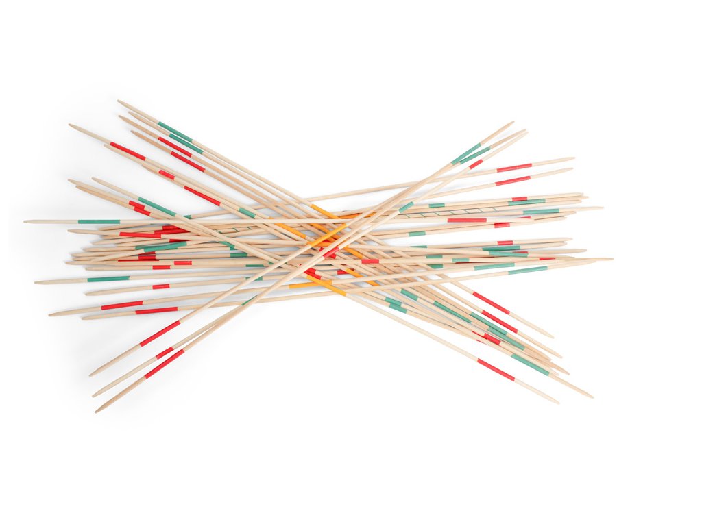 br> První hráč sebere tyčku. Může se dotknout pouze této tyčky a ostatní tyčky se nesmí pohnout. Pokud pohnete nebo se dotknete jiné tyčky, váš tah končí a na řadě je další hráč. Pokud se vám podaří sebrat tyčku, můžete si ji položit vedle sebe a pokračovat ve sběru další.