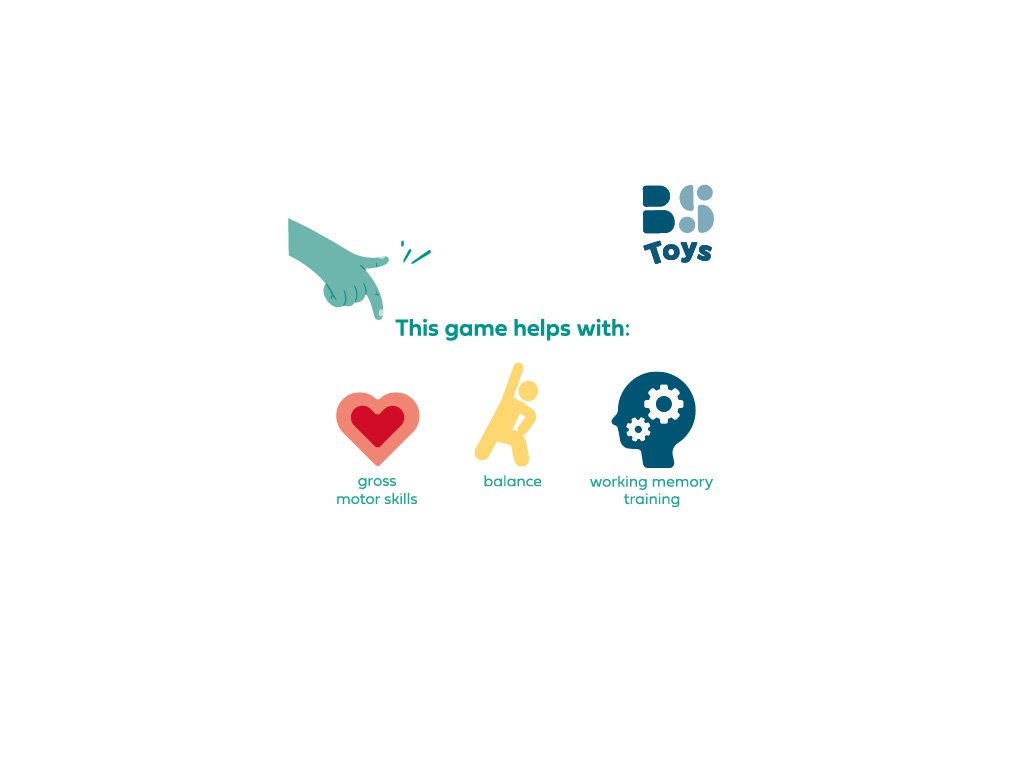 Pohybová hra pro děti, která hravou formou rozvíjí hrubou motoriku, orientaci v prostoru, koordinaci a schopnost následovat instrukce. Hra kombinuje jednoduchá pravidla s aktivním pohybem. Děti postupují podle pokynů opic, plní pohybové úkoly, sbírají banány a snaží se získat banánovou trofej. Ideální pro domácí hraní, školky, družiny i dětské skupiny. Určeno pro 2-4 hráče od 3 let.