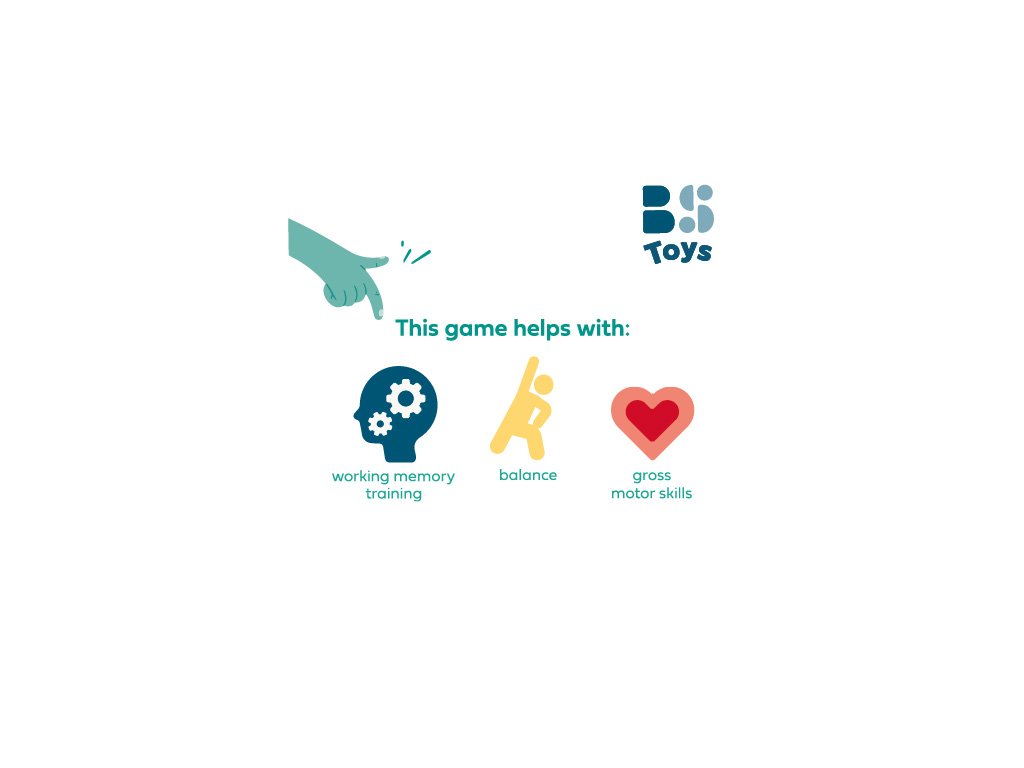 Hra podporuje: trénink paměti, rovnováhu a hrubou motoriku