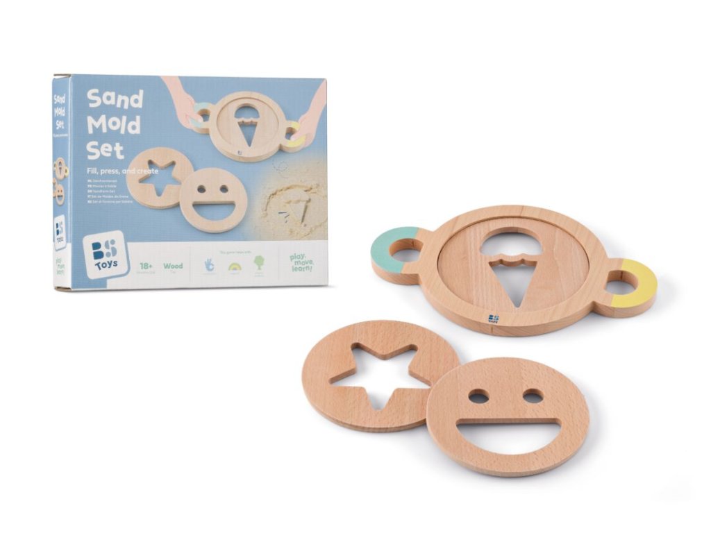 Zábavná sada se třemi razítky, se kterými mohou děti od 18 měsíců tvořit obrázky v písku. Děti vtlačují figurky do písku, což rozvíjí dětskou fantazii při hře. Sada je ideální pro malé ručičky. Perfektní pro kreativní venkovní zábavu!