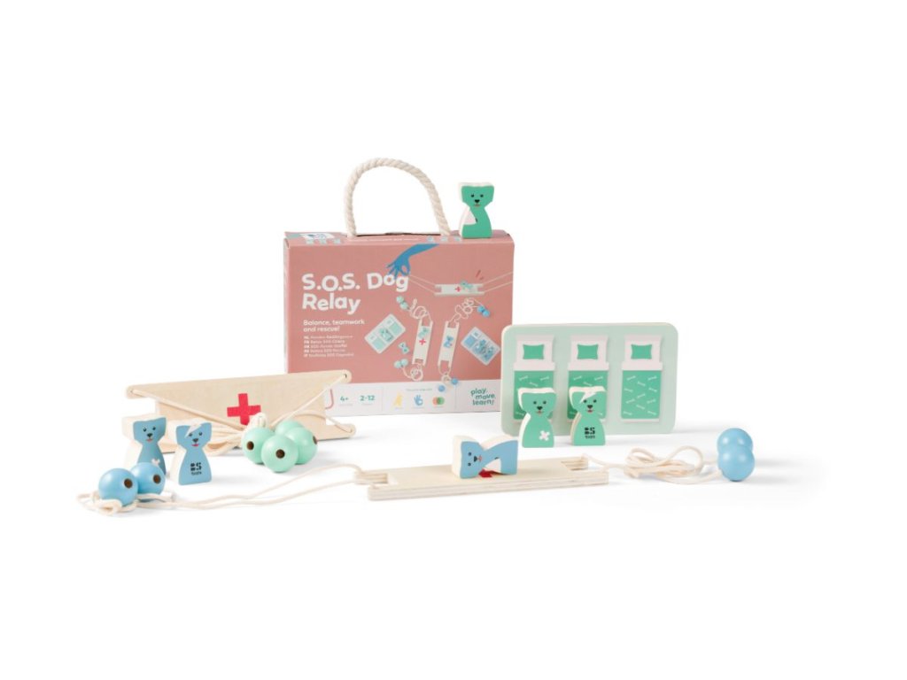 Skvělá zábava pro 2 a více hráčů od 4 let. Pejsci jsou zranění a potřebují bezpečně odnést do pelíšku. Je třeba opatrně vyvažovat nosítka, tak aby pejsek nespadl, a rychle ho odnést do postýlky. Spolupracujte a ukažte, kdo je nejlepší záchranný tým! Pokud chcete zvýšit obtížnost hry, je možné na trasu umístit překážky, které je třeba překročit nebo obejít.