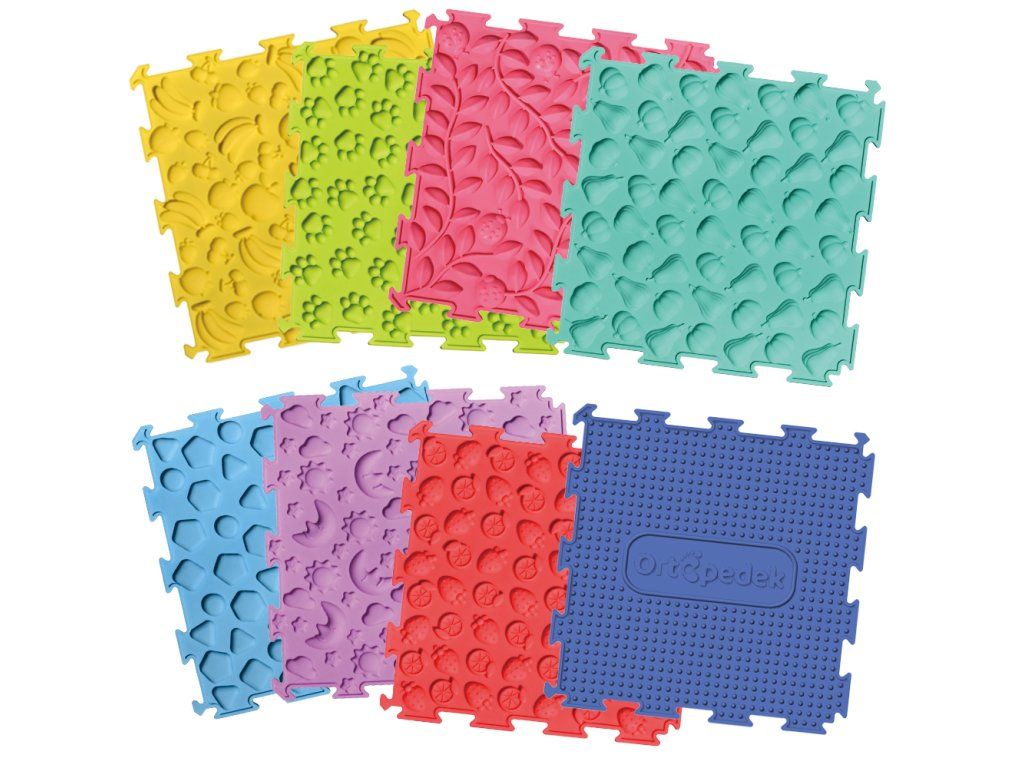 Sada osmi silikonových podložek Ortopedek, každá v jiné zářivé barvě a s unikátní texturou, jemně masíruje chodidla, posiluje klenbu a podporuje rovnováhu. Podložky zlepšují zdraví celého těla od chodidel až po páteř. Podložky jsou odolné a snadno se čistí, takže jsou ideální pro domácí použití, ve fyzioterapeutických ordinacích nebo ve školkách. Pár minut chůze naboso na podložkách Ortopedek je jednoduchý a efektivní způsob, jak podpořit zdraví nohou, posílit klouby a zlepšit držení těla a to vše v pohodlí domova.