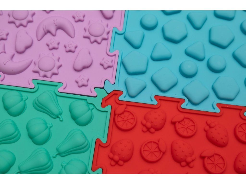 Obsah sady: 8 barevných senzorických podložek o rozměrech 24,5 x 24,5 cm.