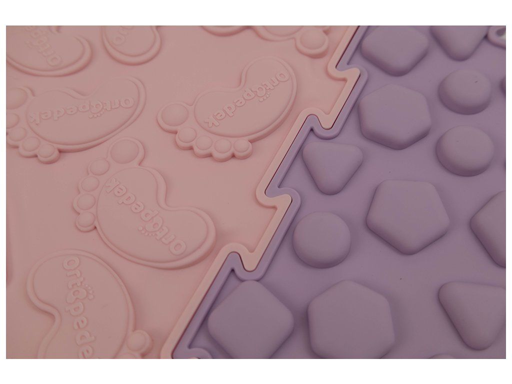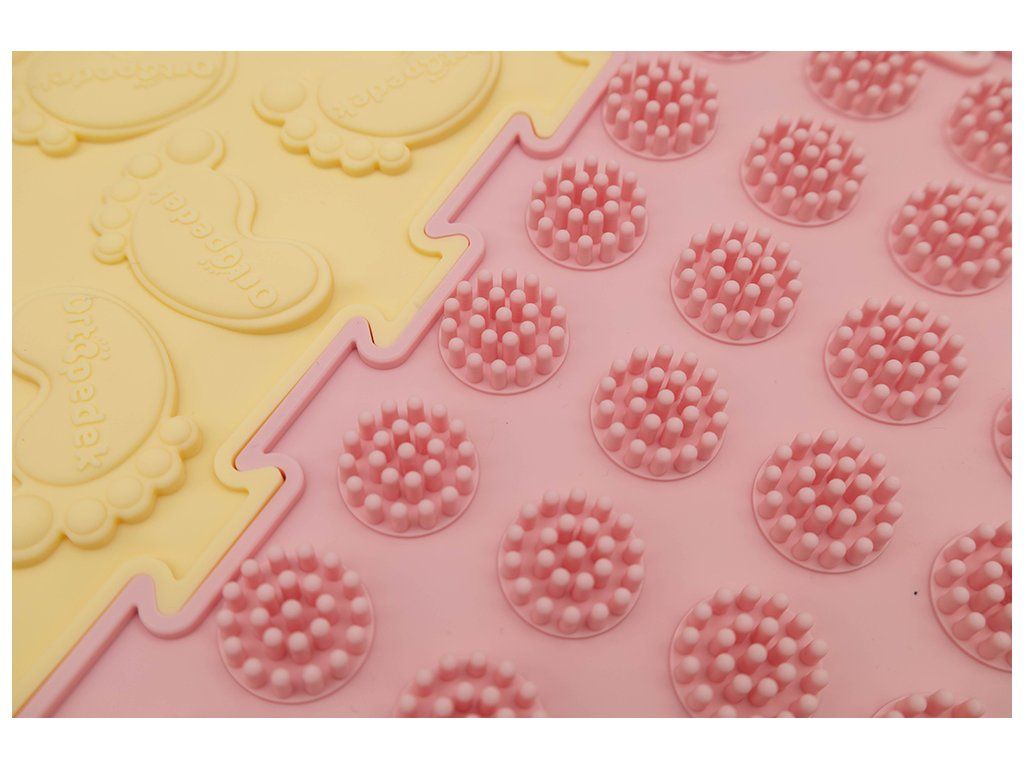 Podložky Ortopedek jsou navrženy s ohledem na děti a jejich správný vývoj. Každý díl má jinou barvu a texturu, což umožňuje komplexní senzorickou stimulaci a aktivaci svalů chodidel, které jsou zodpovědné za stabilitu a správné držení těla. Pravidelné cvičení a hraní na podložkách pomáhá korigovat plochou nohu, předchází problémům s držením těla, posiluje klouby a zlepšuje rovnováhu. Díky vysoce kvalitnímu silikonu jsou podložky odolné, bezpečné a snadno se čistí. Po použití stačí podložky jednoduše opláchnout pod vlažnou vodou. Jsou tak ideální nejen pro domácí použití, ale také do vzdělávacích, terapeutických a sportovních zařízení. Jednotlivé sady jsou kompatibilní, takže je můžete postupně rozšiřovat a přizpůsobit věku dítěte i prostoru doma, ve školce nebo herně.