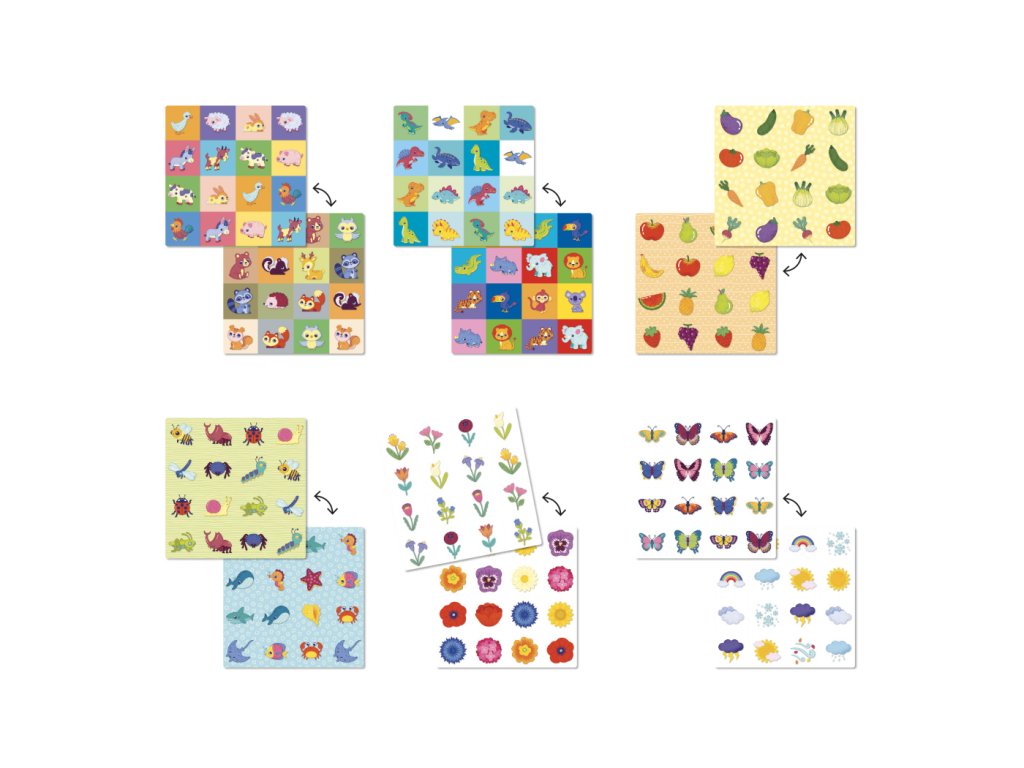 Zábavné pexeso pro děti od 3 let. Hráči mají k dispozici 12 vyměnitelných karet a 192 originálních kreseb pro procvičování soustředění a vizuální paměti.