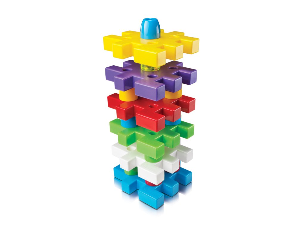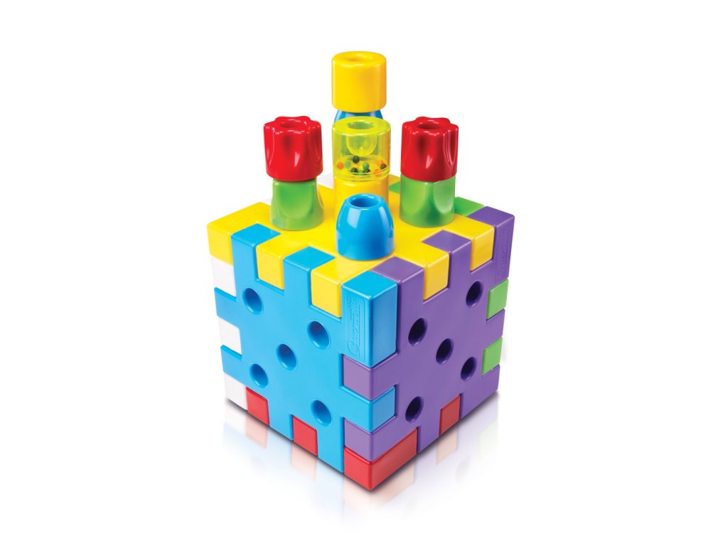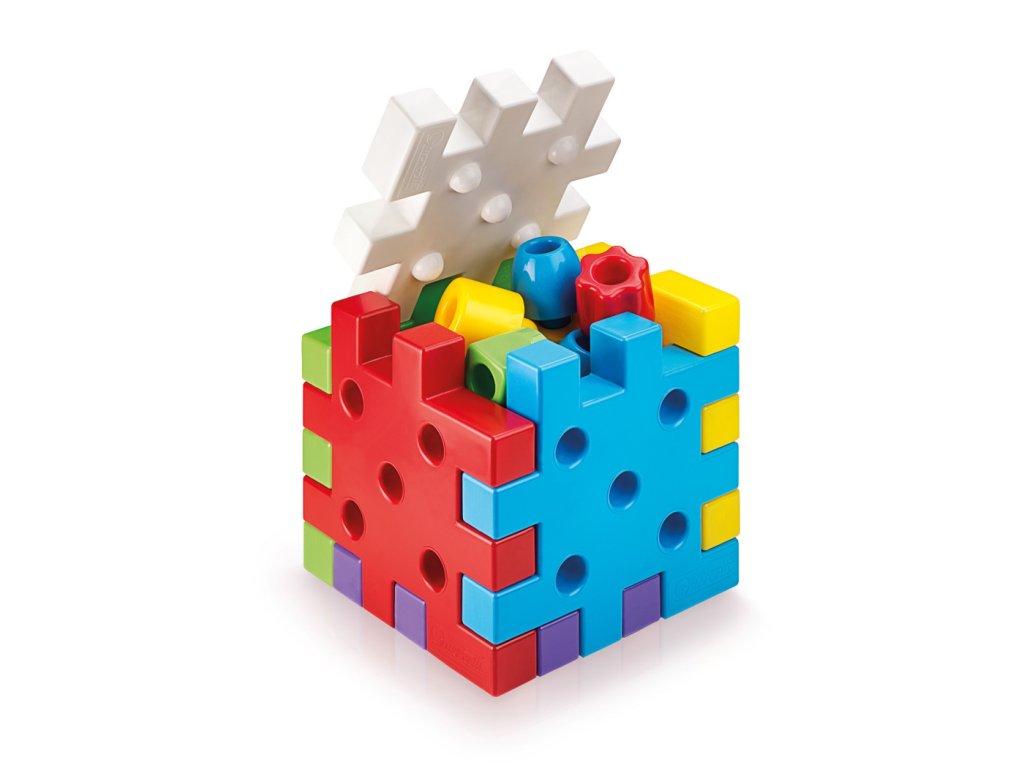 Stavebnice Qubo je ideální první stavebnice pro děti od 1 roku. Velké, barevné dílky se snadno drží a spojují – děti mohou stavět věže, kostky nebo cokoliv, co je napadne. Při hraní si přirozeně rozvíjejí jemnou motoriku, koordinaci oka a ruky, učí se rozlišovat barvy a tvary a zapojují svou fantazii. Hraní podporuje také logické myšlení a trpělivost. Díky měkkému a bezpečnému materiálu si mohou hrát bez obav, ať už doma nebo na cestách. Stavebnice obsahuje celkem 19 dílků.