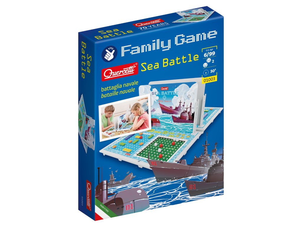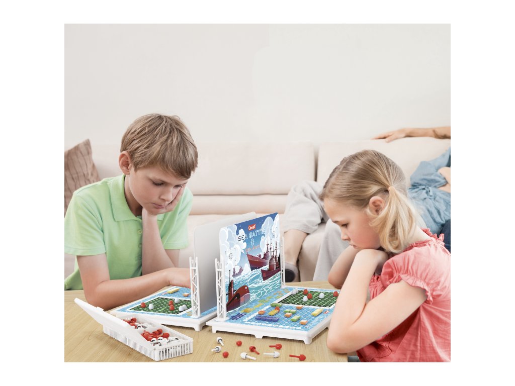 Klasická desková hra pro 2 hráče od 6 let. Cílem je porazit nepřátelskou flotilu tím, že uhodnete pozice lodí v mřížce, která není pro soupeře viditelná.