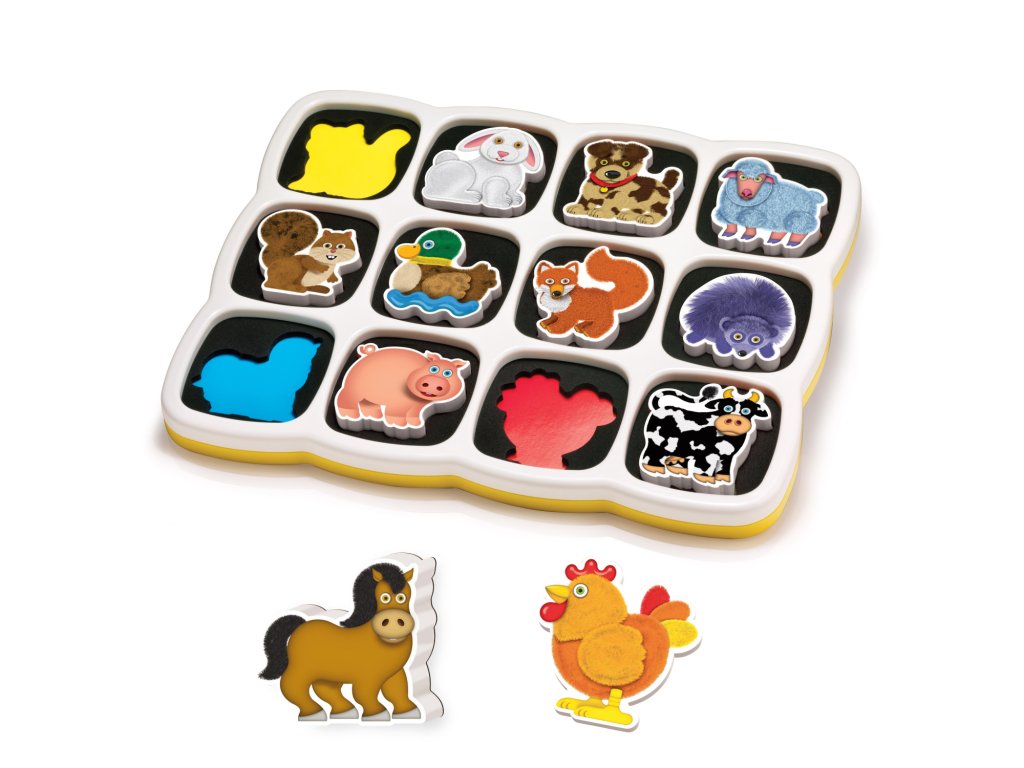 Zábavná logická hra i volná kreativní aktivita v jednom pro batolata a menší děti od 18 měsíců. Na jedné straně magnetické tabulky je 12 magnetů s obrázky zvířat, speciálně navržených pro snadné rozpoznání a manipulaci. Na druhé straně se tabulka mění v barevné pozadí, kde si děti mohou volně rozmísťovat magnetky a vytvářet své vlastní příběhy. Jednoduché kresby v kombinaci s kvalitními barevnými motivy podporují dětskou fantazii a logické uvažování.