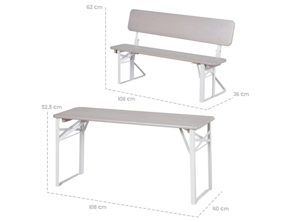 Skládací dětská sedací sada je ideálním nábytkem pro venkovní oslavy, pikniky nebo zahradní párty. Sada obsahuje jeden dětský stůl a dvě lavice s opěradly, které poskytují pohodlné místo až pro čtyři děti (do 80 kg) pro hraní a tvoření venku. Tento praktický set je vhodný pro děti od 24 měsíců a díky skládacímu mechanismu nezabere mnoho místa, což usnadňuje jeho uskladnění. Dětská sedací souprava je navržena s důrazem na bezpečnost, všechny hrany jsou zaoblené, aby chránily malé děti při hře. Díky pevnému masivnímu dřevu, které pochází z udržitelných zdrojů a lakovaným kovovým nohám s mechanismem pro skládání je nábytek stabilní a odolný. Rychlá montáž je zajištěna promyšleným designem, který nevyžaduje složité nástroje. Tento set je ideální pro venkovní aktivity a lze jej kombinovat s dalšími produkty značky roba, jako jsou venkovní kuchyňky nebo lehátka na zahradu.