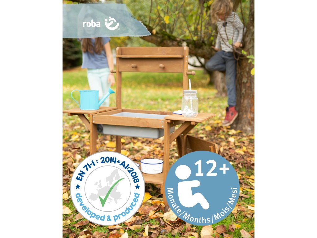 Dětská zahradní kuchyňka je bezpečná, má stabilní konstrukcí bez viditelných šroubů a zaoblené rohy, které chrání malé děti. Montáž je díky přehlednému návodu jednoduchá. Kuchyňka je vyrobená z odolného masivního dřeva pocházejícího z udržitelného lesního hospodářství, všechny materiály jsou testovány na škodlivé látky a certifikovány. Povrch je omyvatelný a snadno se udržuje.
