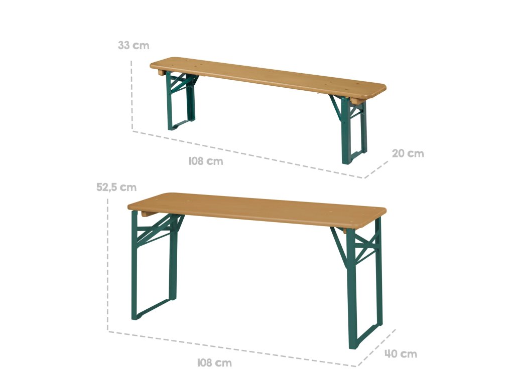 Rozměry laviček: V 34 x Š 108 x H 20 cm