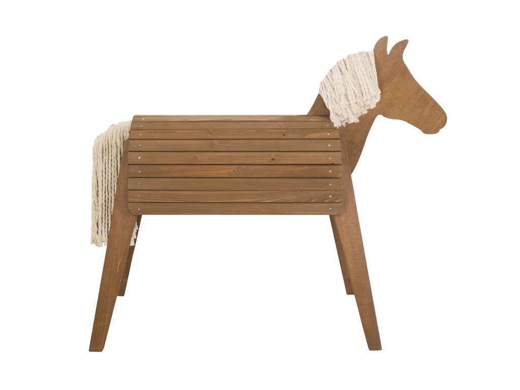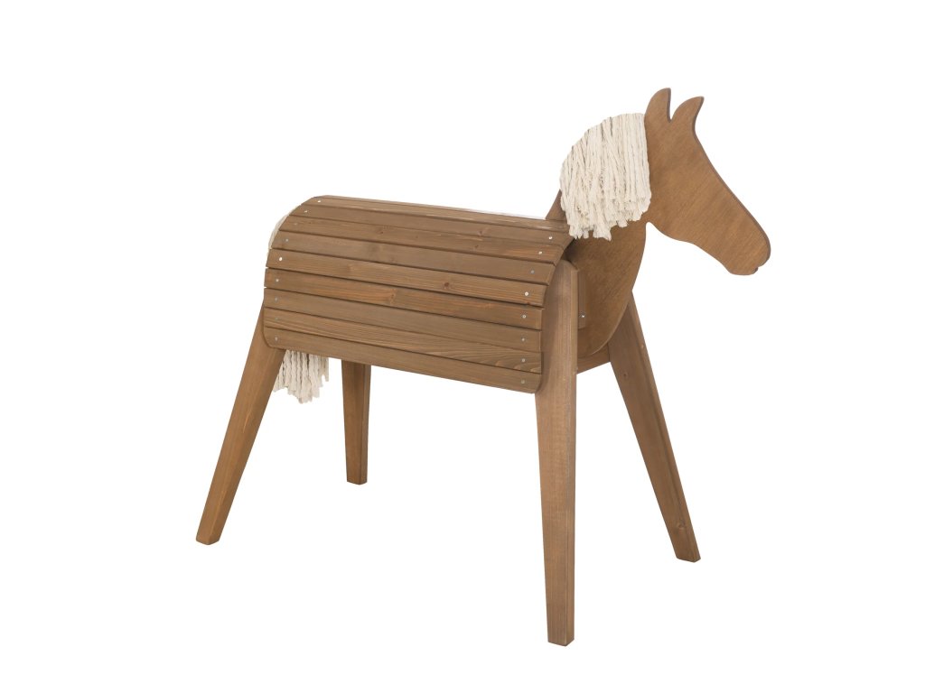 Doporučujeme ho přes noc přikrýt, tak, aby byl chráněn před zvířaty (kočky, ptáci), která by mohla přilákat jeho hříva a ocas. Kůň je vyrobený z masivního dřeva z udržitelných zdrojů. Doporučujeme, aby zahradního koně sestavovaly dvě dospělé osoby.