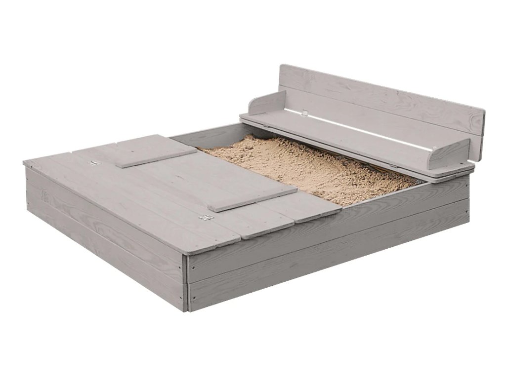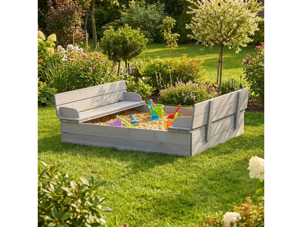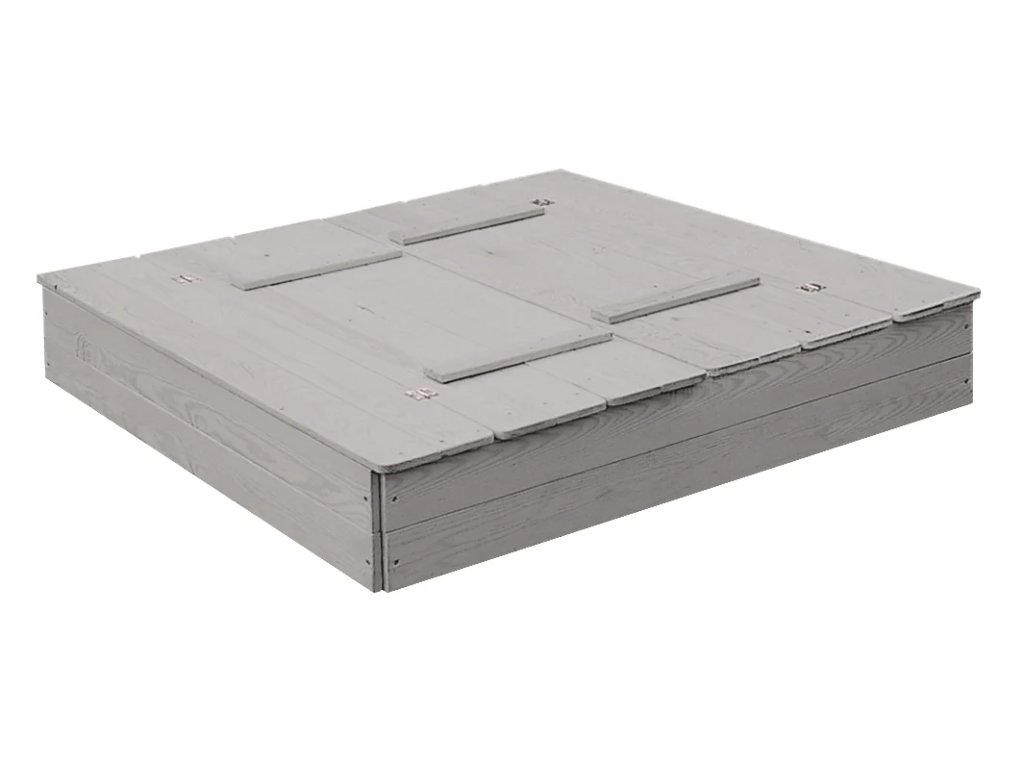 Praktické skládací pískoviště nabízí chytré řešení 2v1. Po otevření poskytne dostatek prostoru pro hru, po zavření chrání písek před nečistotami i zvířaty. Víko lze snadno přeměnit na dvě pohodlné lavice s opěradly, které dětem zpříjemní hraní i odpočinek. Pískoviště je vhodné pro děti již od 12 měsíců. Masivní dřevo s šedou lazurou pochází u udržitelných zdrojů. Je odolné vůči povětrnostním vlivům, stabilní a vhodné pro venkovní použití. Zaoblené hrany a hladký povrch zajišťují bezpečnou hru bez rizika poranění. Pískoviště splňuje bezpečnostní normu, použité materiály jsou testované na škodliviny.