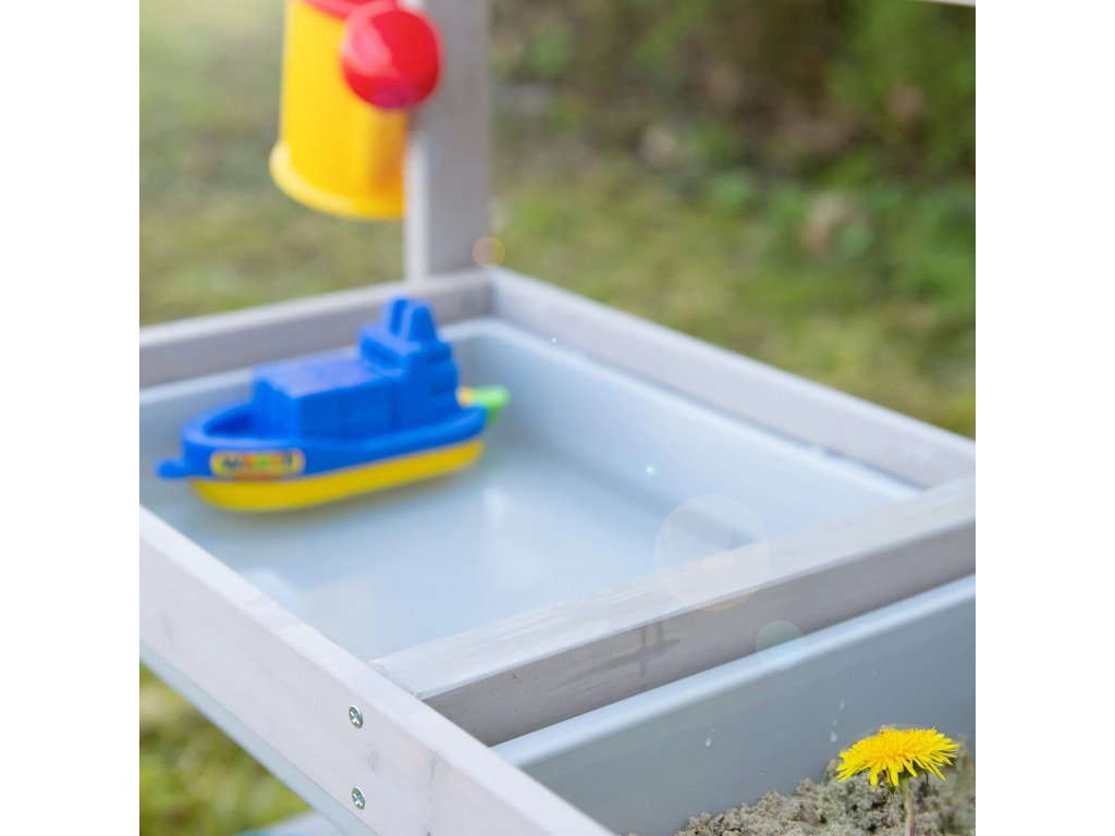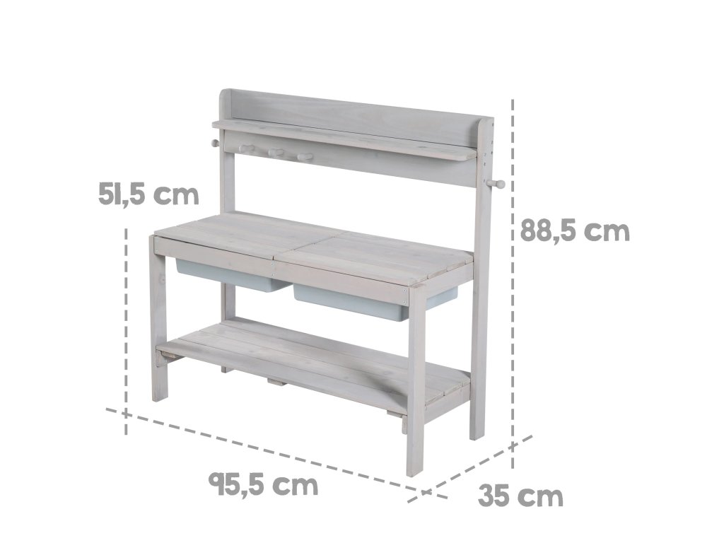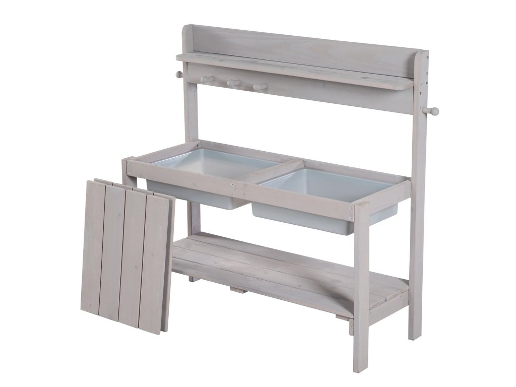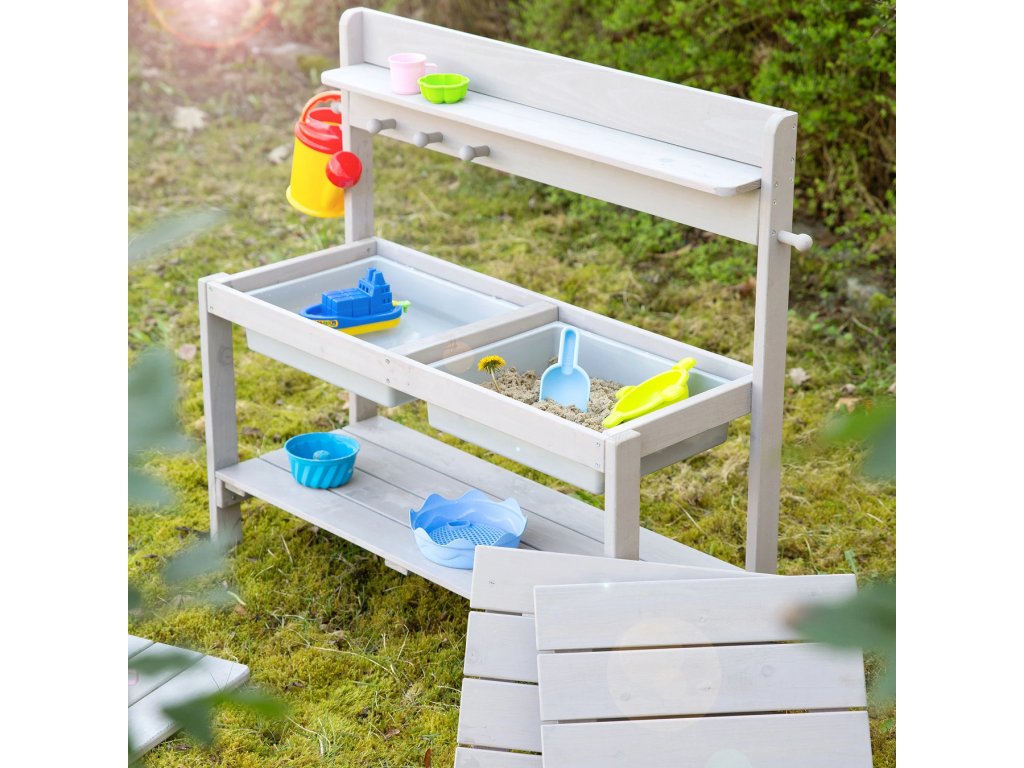 Venkovní kuchyňka je vyrobena z kvalitního, povětrnostním vlivům odolného mořeného masivního dřeva, což ji činí ideální pro hraní s pískem a vodou. Je určena pro děti od 18 měsíců do 8 let a má nosnost až 25 kg. Kuchyňku lze umístit na zahradu, terasu i do vnitřních prostor. Lze jí také přeměnit na stůl na tvoření s úložným prostorem na kreativní potřeby (tužky, modelovací hmota a další materiály). Díky stabilní konstrukci bez viditelných šroubů v horních deskách a zaobleným rohům je zaručena maximální bezpečnost pro děti. Součástí této všestranné kuchyňky jsou 2 odnímatelné plastové dřezy, úložná polička a praktické háčky. Kuchyňka je odolná a snadno se udržuje. Všechny materiály použité při výrobě jsou testovány na škodlivé látky. Montáž je snadná díky přiloženému návodu.