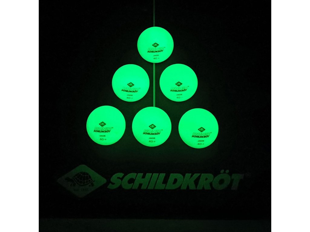 Míčky na stolní tenis Schildkröt svítící ve tmě, jsou ideální pro hraní nejen za dne, ale i za soumraku. Díky fluorescenčnímu materiálu, který se snadno nabíjí za denního světla, mohou míčky svítit ve tmě. Tato sada obsahuje 6 světle zelených, fluorescenčních míčků o průměru 40 mm, vyrobených z kvalitního materiálu Poly 40+. Míčky se hodí nejen pro amatérské hráče, kteří požadují skvělý výkon za příznivou cenu.