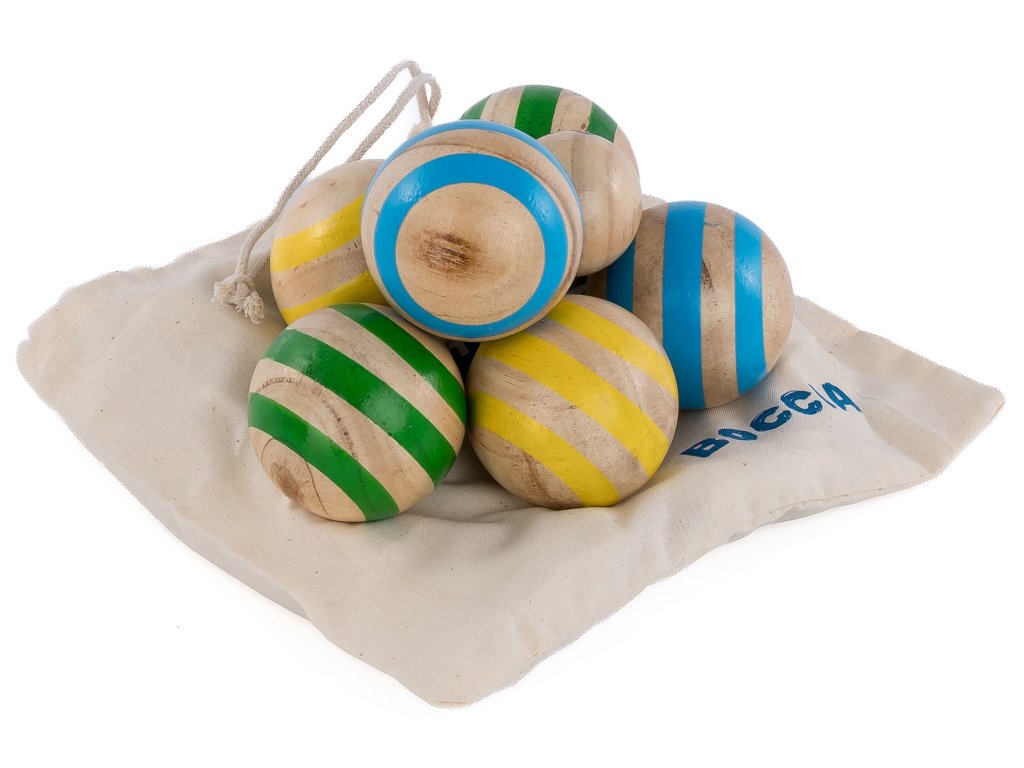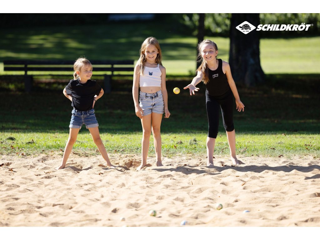 Sada Schildkröt Boccia vyrobená z borovicového dřeva z odpovědně obhospodařovaných zdrojů je perfektní klasickou venkovní hrou pro celou rodinu. Obsahuje 6 barevných míčků (Ø 6 cm) ve třech barvách a jeden terčový míček (Ø 4 cm). Hra je ideální pro napínavé soutěžní výzvy na zahradě, v parku nebo na pláži. Díky hladkému povrchu a pohodlné velikosti se s míčky obzvláště snadno manipuluje a to i dětem. Házení, míření a měření hravou formou pomáhají rozvíjet motorické dovednosti a koordinaci. Sada je dodávána v praktickém úložném sáčku se stahovací šňůrkou, což usnadňuje přepravu a skladování. Ať už na pikniku, narozeninové oslavě nebo kempování, hra Boccia přináší zábavu, čerstvý vzduch a kvalitně strávený čas s rodinou a přáteli.