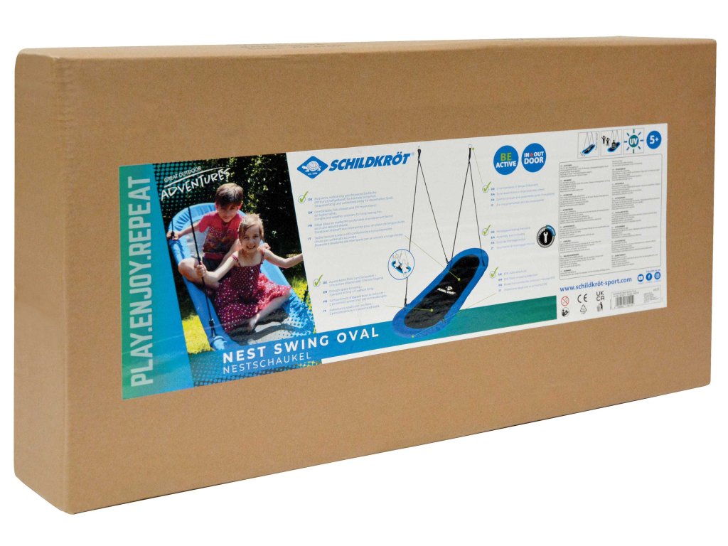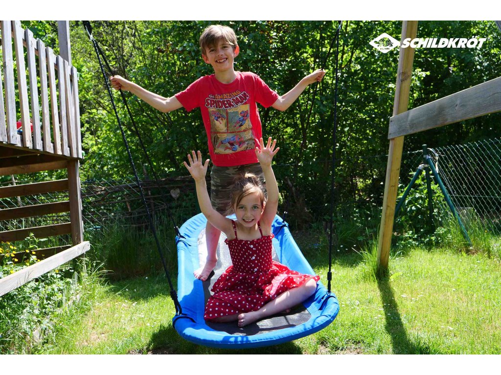 Velká oválná houpací síť Schildkröt s uzavřenou sedačkou (165 × 70 cm) poskytuje dostatek prostoru až pro 2 osoby. Vyrobena je z odolné plastové sítě, díky tomu je ideální pro všechny druhy prostředí, zahradu, terasu i interiér. Nabízí pohodlí při houpání, čtení, hraní i relaxaci, podobně jako lehátko nebo klasická houpací síť. Stabilní rám tvoří 6 rozměrově stálých ocelových trubek (Ø 25 mm, tloušťka 0,8 mm), které se zasunují do sebe a zajišťují šrouby. Ocelové části jsou opatřeny pěnovou ochranou proti nárazu. Síťové lehátko je napnuté přímo na rám, čímž vzniká pevná a zároveň pohodlná konstrukce. Povětrnostním vlivům odolná PE lana (Ø 10 mm) jsou výškově nastavitelná až do 180 cm, a dva nerezové O-kroužky umožňují snadnou montáž na rám houpačky nebo závěsné háky. Maximální nosnost: 150 kg. Vhodné pro děti od 5 let. Dodává se částečně rozmontované, včetně montážního návodu a potřebného nářadí.