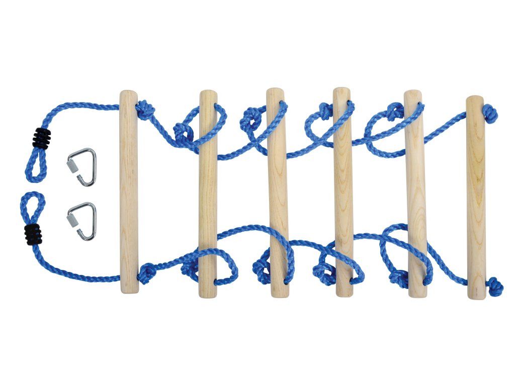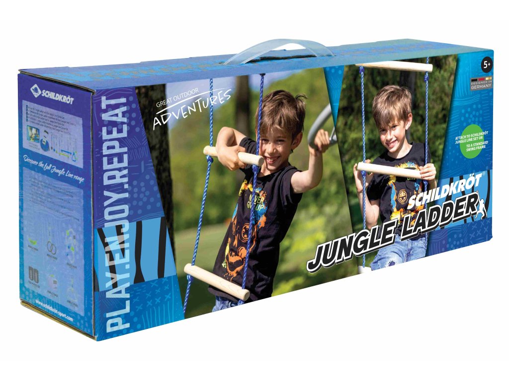 Lanový žebřík Schildkröt je skvělým doplňkem lanové překážkové dráhy Jungle, ale lze jej využít i samostatně nebo připevnit k jakékoliv prolézačce. Vaše děti si tak hravou formou zlepší koordinaci a obratnost. Pevný lanový žebřík (o průměru Ø 10 mm) měří celkem 250 cm. Je vyrobený z odolného a pevného plastového materiálu. Díky tomu je odolný vůči povětrnostním vlivům, takže je ideální pro venkovní použití. Lana doplňuje 6 příček z vysoce kvalitního, neošetřeného tvrdého dřeva (délka 38 cm, Ø 3,2 cm). Pomocí dvou bezpečnostních karabin, které jsou součástí balení, lze žebřík připevnit k překážkové dráze, houpačkám nebo použít k stromovým domečkům. Doporučeno pro děti od 5 let, pro venkovní použití. Maximální nosnost: 1 osoba do 120 kg.