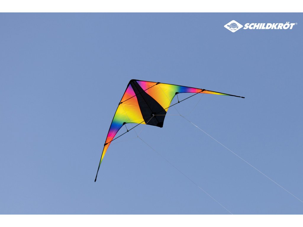 Létající drak 160 od Schildkröt je dvoušňůrový akrobatický drak vhodný pro děti od 12 let. Díky větší ploše je stabilnější při letu, ale zároveň umožňuje silnější tah při manévrech. Drak je vyroben z lehkého a odolného polyesteru, který snese i pády začátečníků. Díky dvěma polyesterovým šňůrám (45kp, 30m, naviják), je možné s drakem provádět pestré letové manévry a triky. Z pevné plachty (160 x 80 cm) a tyčí (Ø 5 mm nebo Ø 3 mm) snadno a rychle draka smontujete. Optimální rychlost větru pro tohoto létajícího draka je 6-49 km/h nebo 2-6 Bft. Je uložen v praktickém obalu, snadno se tak přepravuje a skladuje.