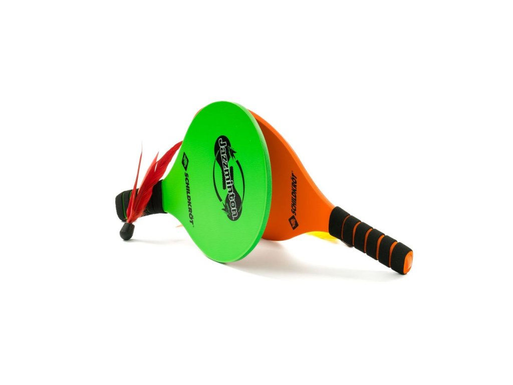 Jazzminton je zábavná raketová hra ideální na pláž, zahradu i do parku. Hrát můžete kdykoliv a kdekoliv, dokonce i večer. Sada obsahuje dvě lakované rakety z pevného 7mm dřeva (33 × 19 cm) s pohodlnými protiskluzovými rukojeťmi a tři speciální péřové míčky, které nabízejí různé herní tempo pro začátečníky i pokročilé hráče. Každý míček je určen pro jiný styl hry. Červený je větší a pomalejší, ideální pro začátečníky a kratší vzdálenosti. Žlutý je menší a rychlejší, vhodný pro dynamičtější hru až do vzdálenosti přibližně 10 metrů. Oranžový LED míček se při úderu rozsvítí pomocí pohybového senzoru na přibližně 10 sekund, takže si můžete užít hru i ve tmě. Speciální konstrukce a uspořádání per zajišťují stabilní let, přesnou dráhu letu a příjemný odraz, který vytváří jedinečný herní zážitek. Led míček je vybaven vyměnitelnou baterií CR927. Před prvním použitím vyjměte vložený kontaktní zámek na baterii.