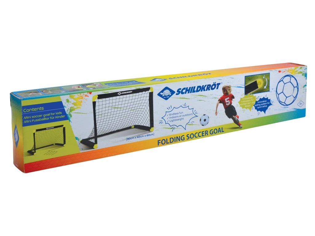 Skládací fotbalová branka od značky Schildkröt vám umožní zahrát si fotbal kdekoliv a kdykoliv. Váží pouhých 900 g a s rozměry 90 × 60 × 60 cm je ideální pro různé míčové sporty jako fotbal, házenou nebo hokej. Díky robustnímu kovovému rámu je branka stabilní a odolná, přičemž její rychlá montáž nevyžaduje žádné nástroje, takže ji snadno sestavíte během několika minut. Bezpečné ukotvení pomocí 4 kovových kolíků zajistí stabilitu při větru nebo při silných střelách. Díky skládací konstrukci je snadno přenosná a po použití se dá kompaktně uložit, což je ideální pro rodiny s omezeným prostorem. Skládací branka je perfektní pro zahradní hry, sportovní tréninky nebo narozeninové oslavy. Skvěle se hodí pro děti, teenagery i dospělé, kteří si chtějí užít fotbal nebo jiné míčové hry s rodinou a přáteli. Díky zaobleným hranám je branka bezpečná i pro děti, už od 3 let. VAROVÁNÍ: Montáž mohou provádět pouze dospělé osoby!Doplňkové parametry