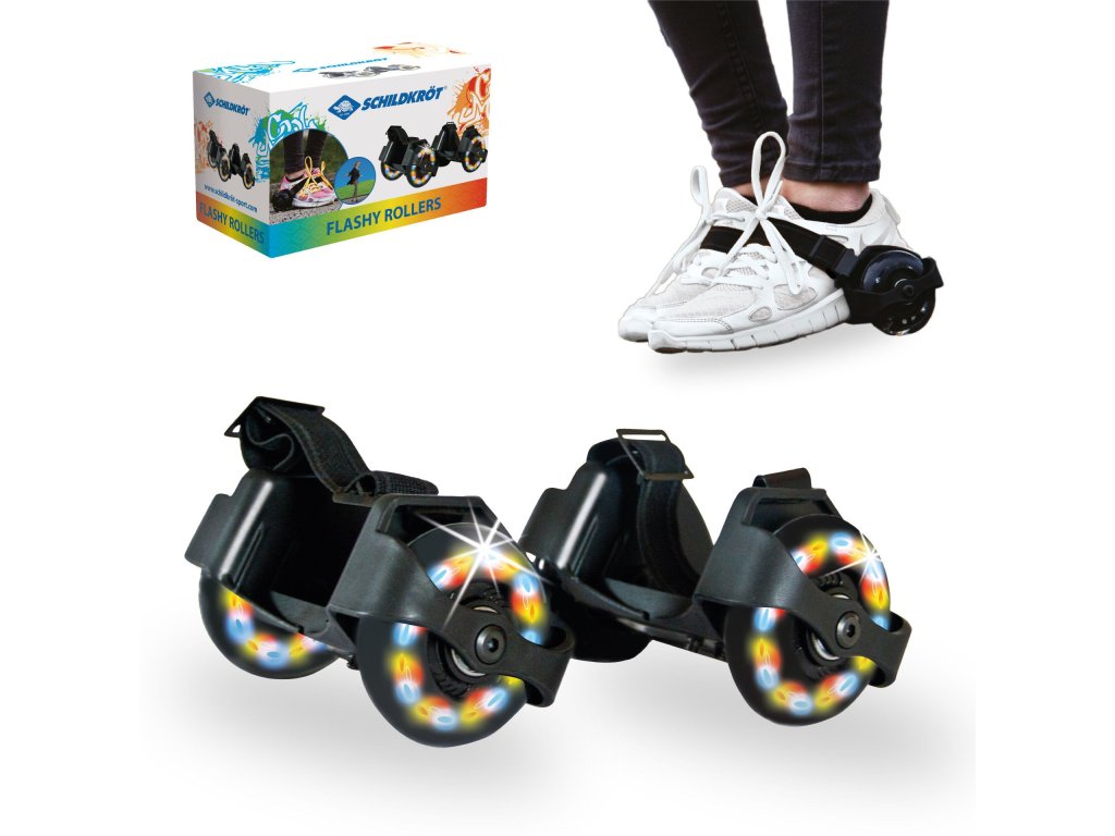 Kolečka Schildkröt Flashy Rollers jsou skvělým způsobem, jak se pohybovat, běhat a klouzat. Díky kvalitním kuličkovým ložiskům ABEC5 a praktickým PU kolečkům se pohybujete plynule a snadno. Každé kolečko je vybaveno tříbarevnými LED světly, která se rozsvítí při otáčení, což přidává každé jízdě jedinečný efekt, zejména pak při jízdě za západu slunce. Kolečka jsou nastavitelná na různé velikosti a šířky pomocí dvou šroubů (klíč je součástí balení) až do maximální nosnosti 75 kg. Elastické pásky kolečka pohodlně upevní kolem kotníku. 4 polyuretanová kolečka tlumí nárazy a spolu s vysoce kvalitními kuličkovými ložisky ABEC5 zaručují plynulý a hladký pohyb bez problémů. Před prvním použitím si přečtěte návod. Doporučujeme nosit ochranné pomůcky.Doplňkové parametry