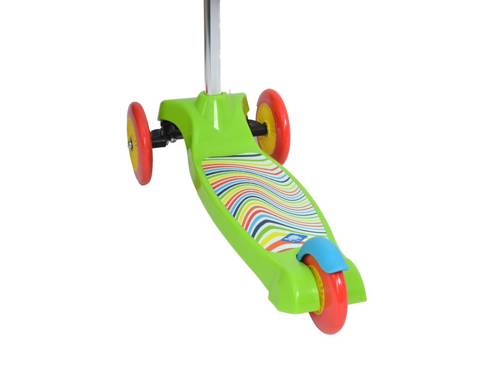Maximální nosnost koloběžky je 20 kg. Řídítka a řídicí tyč jsou vyrobeny z vysoce kvalitního hliníku. Šířka řídítek je 24 cm a výška 66 cm. Řídítka jsou odnímatelná, díky čemuž lze koloběžku složit do menšího rozměru pro přepravu. Koloběžka tak bude stálým společníkem na výletech a dovolených. Díky speciálnímu 3kolovému provedení je koloběžka pro děti více bezpečná. Dvě přední otočná kolečka jsou vyrobena z plastu a jsou průměru 120 mm. Zadní kolo je o něco menší, má průměr 100 mm. Všechna kolečka jsou vybavena hladce běžícími kuličkovými ložisky ABEC5. Nad zadním kolem se nachází pedálová brzda, která koloběžku rychle a bezpečně zastaví a je snadno ovladatelná i pro děti.