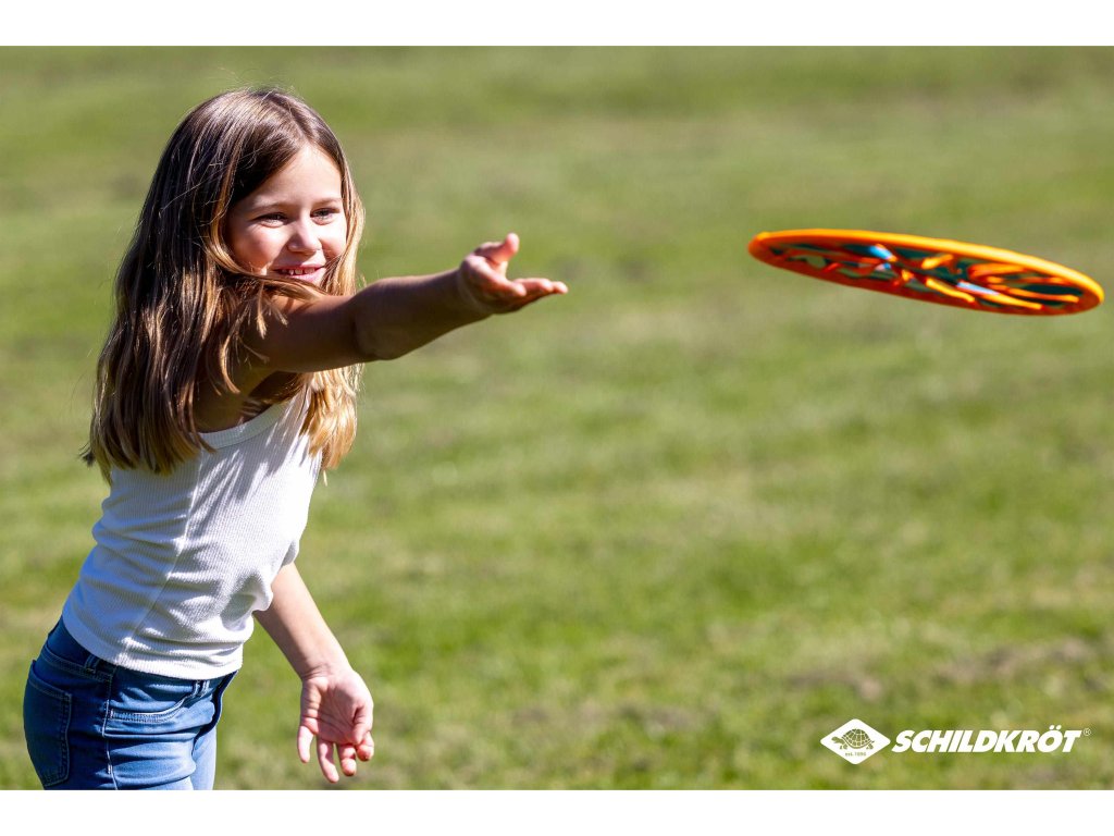 Neoprenový létající talíř Schildkröt (Ø 30,5 cm) se vyznačuje lehce uchopitelným provedením a vynikajícími letovými vlastnostmi. Díky speciálně zkrouceným křídlům letí pomalu, což dětem dává více času na reakci a usnadňuje chytání! Tento létající talíř je vyroben výhradně z měkkého neoprenu, není tedy tak tvrdý jako tradiční plastové disky, a je tak pro děti bezpečnější. Neoprenový materiál je navíc odolný vůči slané vodě a rychle schne, což z něj dělá ideálního společníka pro zábavu na pláži nebo u moře.Doplňkové parametry