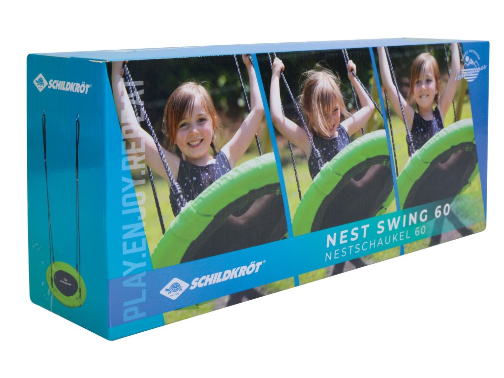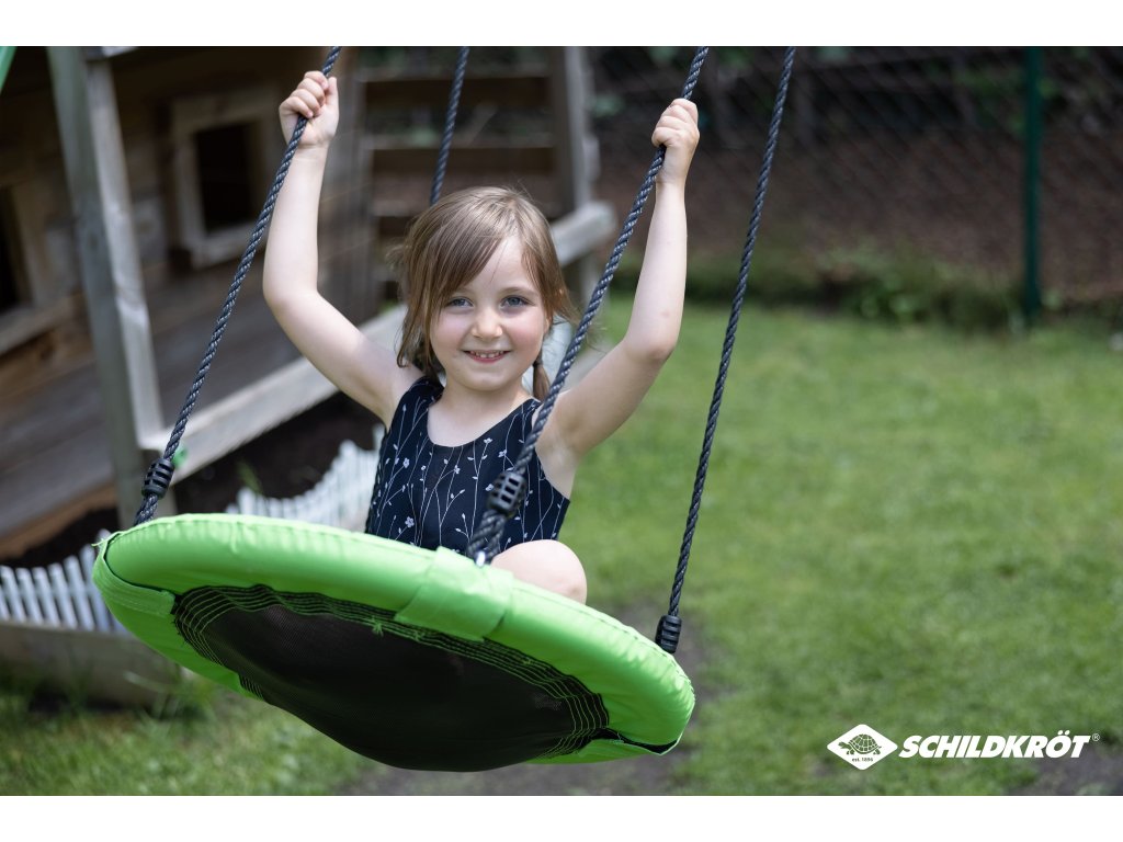 Užijte si chvíle s rodinou na zahradě s houpacím hnízdem Schildkröt! Toto houpací hnízdo Schildkröt o průměru 60 cm má pohodlné, ohraničené sedátko z odolné plastové síťoviny (polypropylen). Bezpečné použití hnízda je zajištěno díky velikosti lan, která jsou přizpůsobena tomu, aby se jich mohli děti snadno držet. 4 rozměrově stabilní ocelové trubky (25 mm x 0,8 mm) mají ochranu proti nárazu a jsou vzájemně spojeny pomocí oček. PE nosná lana (Ø 10 mm) lze výškově nastavit mezi 70 cm a 150 cm pomocí dvou kusů ve tvaru osmičky a jsou připevněna k pojistným kroužkům. Houpací sítě Schildkröt lze používat uvnitř i venku. Maximální nosnost je 150 kg. Doporučeno pro děti od 3 let.