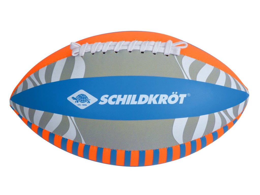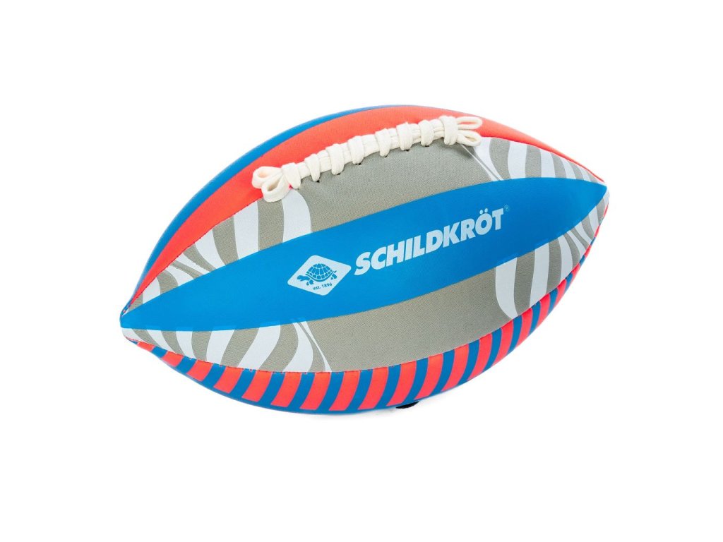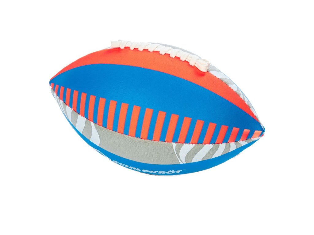 Neoprenový míč na americký fotbal v moderním designu je ideální pro zábavnou hru na pláži, v parku i na hřišti. Míč ve standardní velikosti 6 (26,5 × 15 cm) má měkký neoprenový povrch s pevným prošitím, je příjemný na dotek a šetrnější k pokožce než klasické kožené nebo syntetické míče. Díky přilnavému materiálu se míč dobře drží a snadno chytá, což ocení zejména děti. Míč je vybaven ventilkem pro nafukování (maximální tlak 0,2 baru) a dodává se nenafouknutý v praktickém síťovaném sáčku. Neoprenový povrch je vhodný i pro hru ve vodě, dokonce je odolný vůči slané vodě.