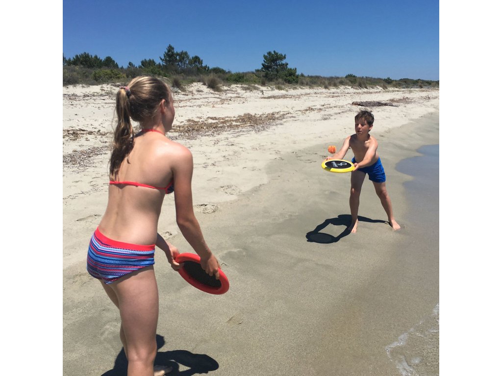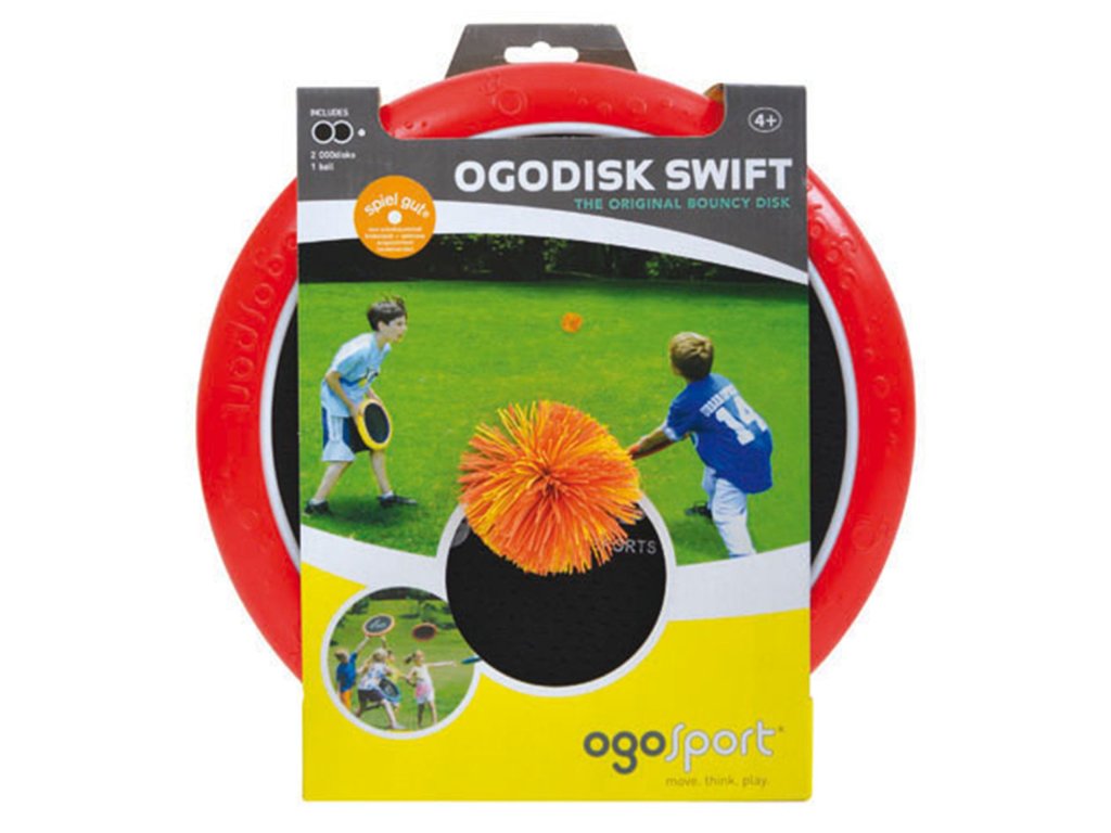 Sada obsahuje 2 kotouče o průměru 29 cm, potažené odolnou elastickou síťovinou, která zajišťuje vynikající trampolínový efekt pro dlouhé lety míče. Kotouče mají na okraji pěnový úchopový kroužek, což umožňuje pohodlné držení a minimalizuje riziko zranění. Tento set je ideální pro hraní na pláži, v parku nebo na zahradě. Ogosport je velmi všestranný – můžete hrát jak Ogo, tak použít disky jako frisbee. Sada obsahuje střapatý míček (Ø 6,5 cm), který se při dopadu na zem nekutálí, ale zůstává na místě, kde spadl. Tento míč je ideální pro trénink motorických dovedností a koordinace oko-ruka. Náhradní míčky lze dokoupit.