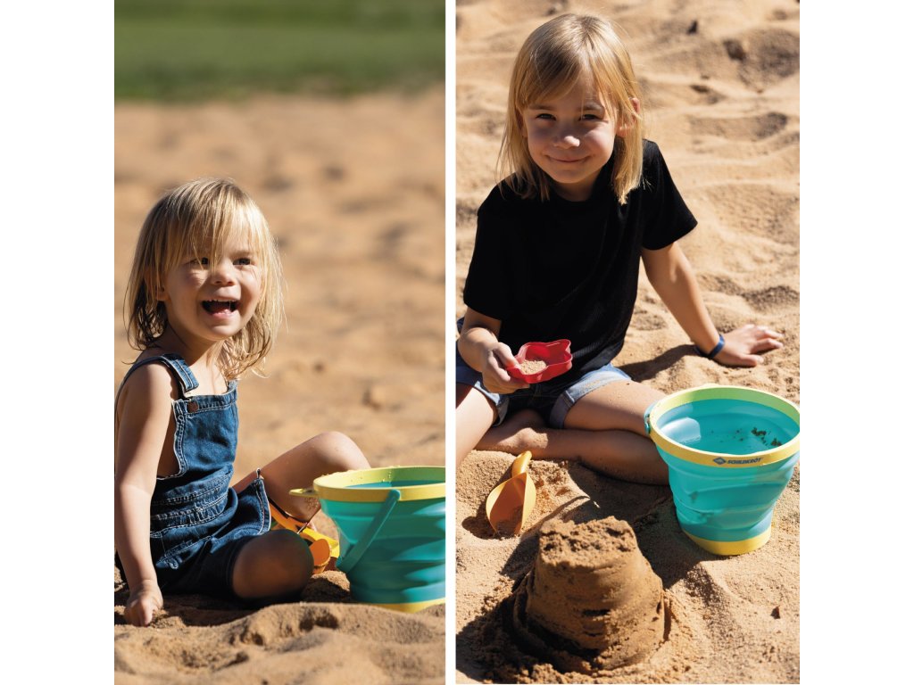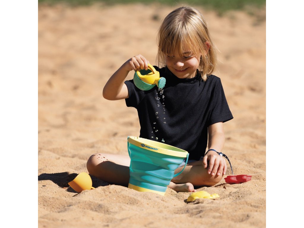 Sada hraček na písek, ať už na pláž nebo na pískoviště, pro děti od 18 měsíců. Sada obsahuje 2litrový kyblík vyrobený z flexibilního TPR materiálu, který lze složit do plochého tvaru, čímž šetří místo a snadno se vejde do batohu, plážové tašky nebo kočárku. Lopatka, formičky a konev na zalévání jsou vyrobeny z inovativní směsi materiálů se 70% podílem přírodní slámy. Díky tomu je sada obzvláště lehká, pohodlná na používání a zároveň dostatečně robustní pro každodenní hraní. Celou sadu lze pohodlně uskladnit v přiloženém úložném vaku, což usnadňuje její transport na cestách.Doplňkové parametry