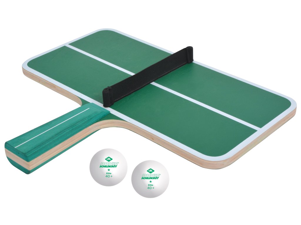 Inovativní hra stolního tenisu od značky Schildkröt je ideální začátek pro budoucí profesionály ve stolním tenise. Tato sada se skládá ze dvou míčků a rakety ve tvaru malého pingpongového stolu se sítí (30 x 15 cm). Otáčením zápěstí zleva doprava se hráč snaží přimět pingpongový míček, aby přeskočil z jedné poloviny stolu na druhou. Tato hra pro jednoho hráče vyžaduje zručnost, soustředění, koordinaci a pohotovost.Doplňkové parametry