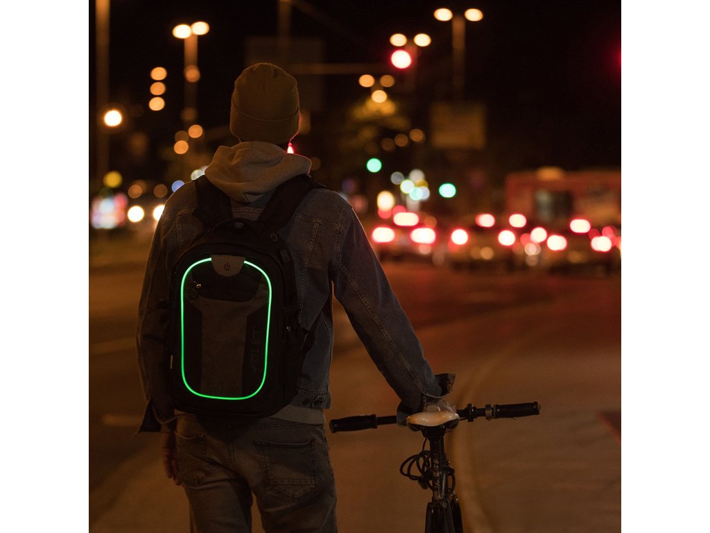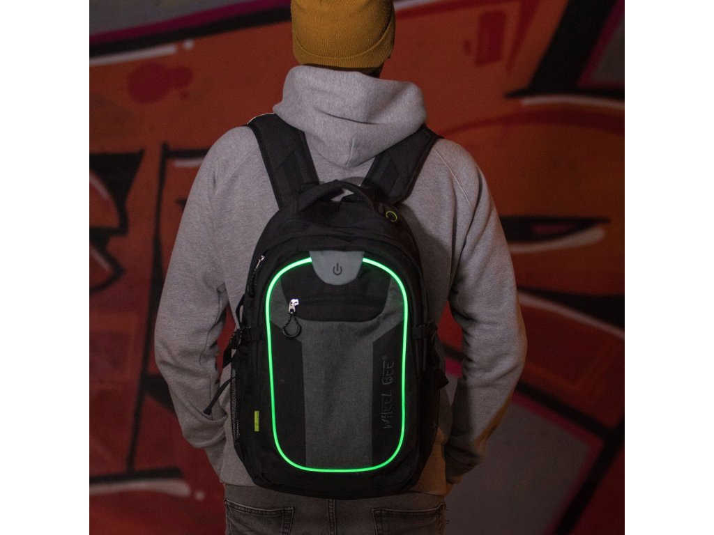 Wheel-Bee - školní a volnočasový batoh s LED osvětlením - Revolution - černá/šedá