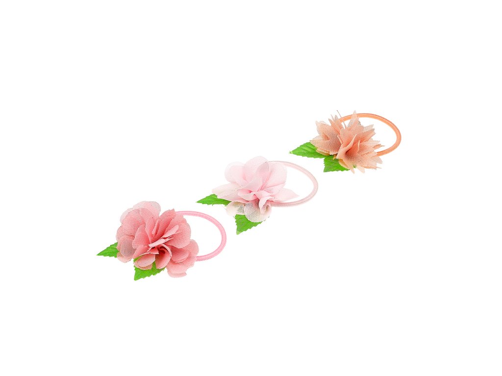 Sada tří elastických gumiček do vlasů s květinou. Vesele ozdobí culík, cop nebo drdůlek a dodají účesu hravý vzhled. Jemné k dětským vláskům, vhodné pro každodenní nošení i slavnostní příležitosti. Skvělý doplněk pro malé parádnice od 3 let.